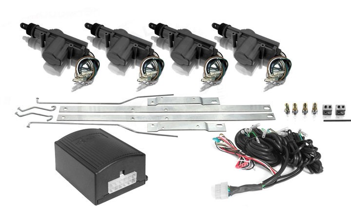 4 ks pětivodičové servo, sada táhel, spojovací materiál, kabeláž pro 4-dveře vozidla s vyvedením zadních kontaktů