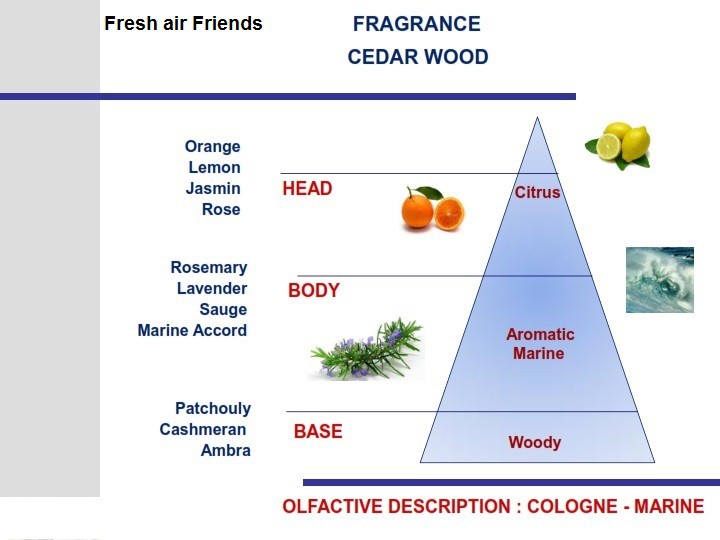 Cesare е освежител за въздух за автомобили, който съдържа агресивни молекули, които могат дълго време да се борят с коварните бактерии, които причиняват неприятни миризми. Нежен цитрусов аромат с интензивно подправена нотка на лавандула, мащерка и евкалипт, съчетан с неустоимия аромат на ценна дървесина. Човечето Cesare от колекцията любими фигурки Fresh Air Friends на Mr&Mrs Fragrance е идеалният партньор за ароматизиране на интериора на вашия автомобил.Фигурка за вентилация Mr&Mrs Fragrance от серията CESARE