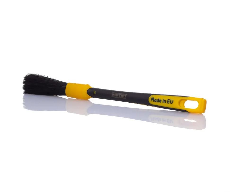 Представяме високоефективната четка за детайли Work Stuff Detailing Brush Rubber Black, която е идеална за отстраняване на твърди замърсявания и мръсотия от джанти, прагове, вдлъбнатини и моторни части на вашия автомобил. Благодарение на синтетичните влакна и гумената дръжка тази четка е щадяща към повърхностите и в същото време предоставя максимална почистваща сила. Тази четка е подходяща за употреба както в интериора, така и в екстериора и може да отстрани дори най-упоритите замърсявания от повърхностите на вашия автомобил. Гумената дръжка е специално проектирана за почистване на ъгли и труднодостъпни места, като намалява риска от повреда на лака и други елементи, склонни към надраскване. Обърнете внимание, че въпреки че тази четка е идеална за много различни детайли, не трябва да се използва върху елементи, податливи на надраскване, като каросерии на автомобили или мотоциклети, пиано лак, джанти с пиано-черно покритие или гланцови черни повърхности. Ако търсите универсална четка за детайли, която да се справи с натовареното почистване на вашия автомобил или мотоциклет, черната четка за детайли е перфектният избор!Основни характеристики