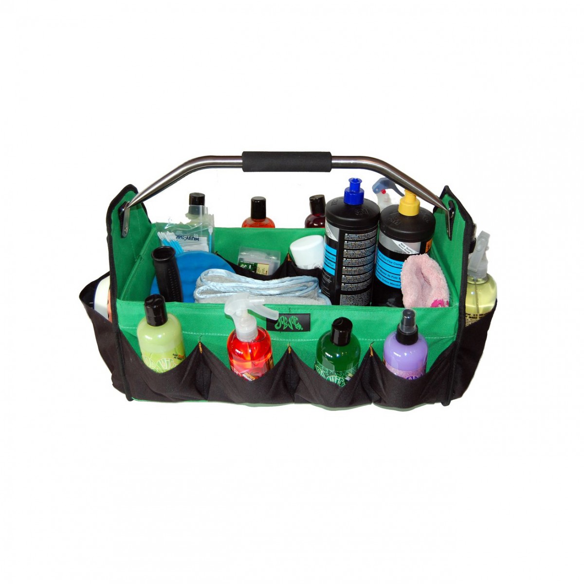 Detailingová taška Dodo Juice Tooled Up Bag je skvělým pomocníkem pro přenášení celé vaší detailingové výbavy. Tato taška má opravdu velkorysé rozměry, což znamená, že se vám dovnitř vejde několik leštiček (ve vodorovné poloze) a boční kapsy dokáží pojmout až 14 lahví o objemu 250 ml (tři v každé koncové kapse). Uvnitř jsou další čtyři kapsy - ideální pro clay, kotouče, kartáče na kola atd. Skvělý přístup do tašky získáte po sklopení držadla. Taška je na spodní straně opatřena gumovými nožičkami, což zajistí stalibitu na zemi.| Каталожен номер | DJTUBAG |