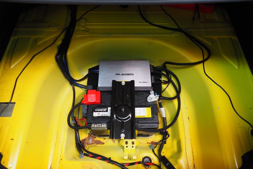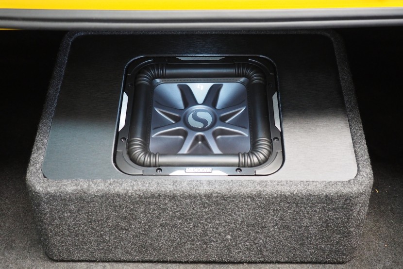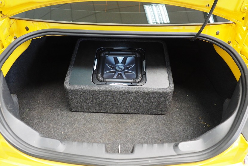 Американският красавец Chevrolet Camaro и първокласен субуфер Kicker също от Америка — това е перфектна комбинация. Този кутия, която има висока мощност 600 W RMS и същевременно компактни размери, се захранва от моноблок на марката Gladen. Сменихме и фабричното авторадио с 2DIN устройство Kenwood с bluetooth handsfree.