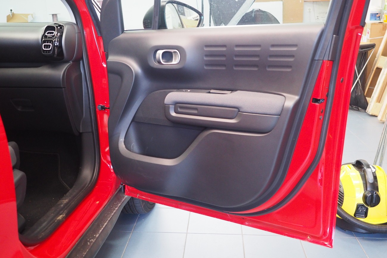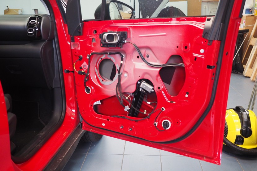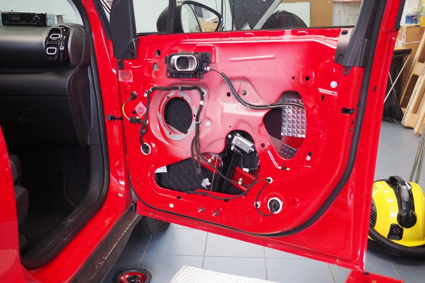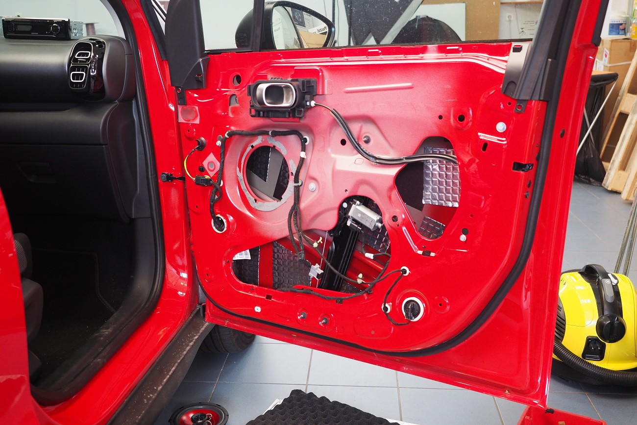 Монтаж на високоговорители и авторадио в автомобил Citroen C3, в който фабрично не са били налични високоговорители нито авторадио. В звукоизолираните предни врати инсталирахме базови коаксиални високоговорители на немския производител Mac Audio от серията APM Fire, които свързахме към новото основно устройство Kenwood с USB слот и bluetooth handsfree.