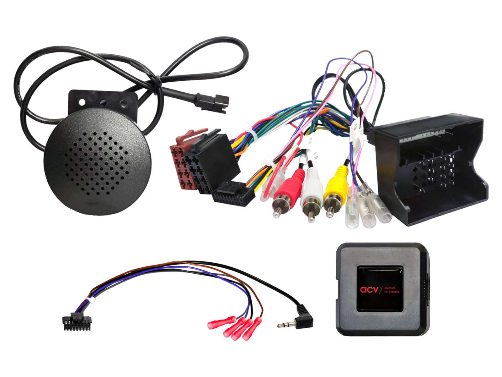- Свързване на OEM управление от волана: 3,5 mm жак или свободен проводник към входа SWC на радиото.
