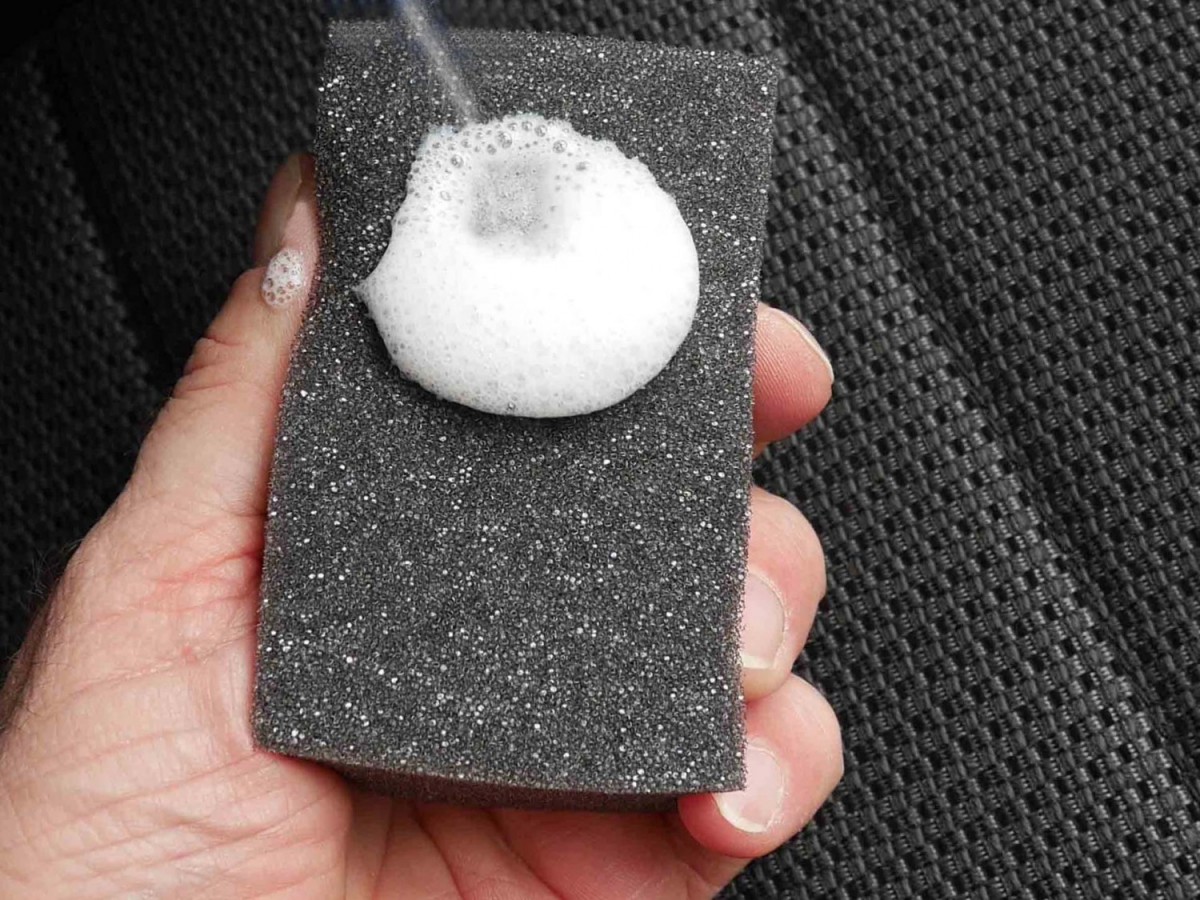 - Няколко пъти стиснете гъбата, докато се образува пяна.
