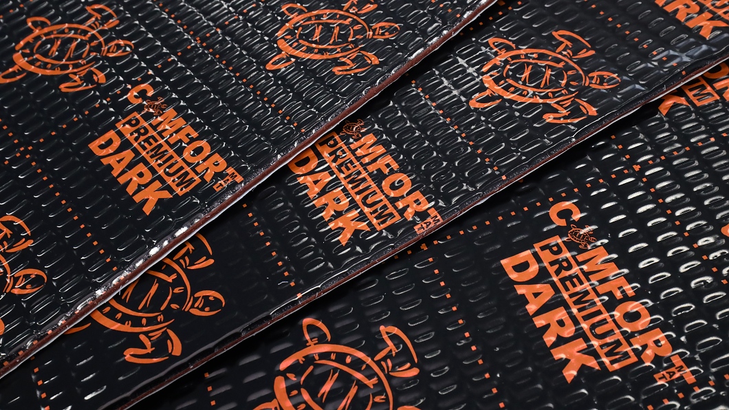 Премиум антивибрационен шумоизолационен материал Comfortmat от серията Dark, който принадлежи към премиум продуктите на Comfortmat. Той се състои от специален самозалепващ бутил-гума слой и алуминиева фолиа с правоъгълна релефна структура. Най-новата моделна серия Dark беше напълно обновена през 2019 г. и предлага напълно уникални свойства благодарение на високо ефективния и ултралеко състав на уплътняващото вещество D-Formula. Серийното производство на антивибрационните материали от серията Dark стана възможно след разработването на новата многоетапна технология на нискотемпературно смесване DarkAir. Благодарение на това бяха постигнати показатели, които преди това бяха недостъпни. Нито един друг антивибрационен материал в света не предлага такова съотношение тегло/ефективност. В Comfortmat успяха да създадат уникален материал, който в много отношения противоречи на очакванията - значително намалено тегло и същевременно повишен акустичен коефициент на загуби до преди това недостижими стойности. Както всички материали Comfortmat, и серията Dark изпъква с висока адхезия към метал, устойчивост на вода, влага и масла, антикорозионни свойства и запазва същите характеристики при екстремни температури както през лятото, така и през зимата.