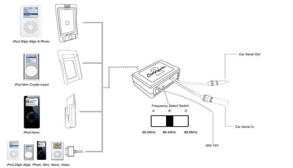 FM модулятор за свързване на iPod / iPhone към автомобилно радио