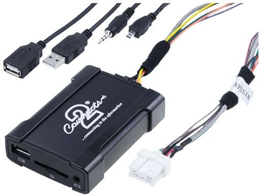 Адаптер, който позволява свързване на USB вход и AUX вход (3,5 JACK) към OEM радиоприемници с управление на CD чейнджър (на мястото за свързване на CD чейнджъра). Управление на възпроизвеждането на музика от USB устройства чрез OEM радиоприемника.