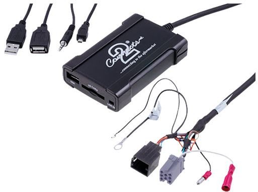 Адаптер, позволяващ свързване на USB вход и AUX вход (3,5 JACK) към OEM автомобилни радиа с управление на CD чейнджър (на мястото за свързване на CD чейнджъра). Управление на възпроизвеждането на музика от USB устройство чрез OEM автомобилното радио.