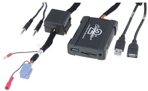 Адаптер, позволяващ свързване на USB вход и AUX вход (3,5 JACK) към OEM автомобилни радиа с управление на CD чейнджъра (на мястото за свързване на CD чейнджъра). Управление на възпроизвеждането на музика от USB аксесоари чрез OEM автомобилното радио.