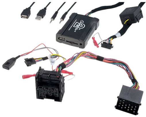 Адаптер, позволяващ свързване на USB вход и AUX вход (3,5 JACK) към OEM автомобилното радио с управление на CD чейнджъра (на мястото за свързване на CD чейнджъра). Управление на възпроизвеждането на музика от USB периферия чрез OEM радио.