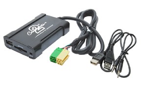 Адаптер, позволяващ свързване на USB вход, възпроизвеждане на аудио файлове от SD памет карта и AUX вход (3,5 JACK) към OEM автомобилни радиоапарати с управление на CD чейнджър (на мястото за свързване на CD чейнджъра). Управление на възпроизвеждането на музика от USB аксесоар чрез OEM радио.