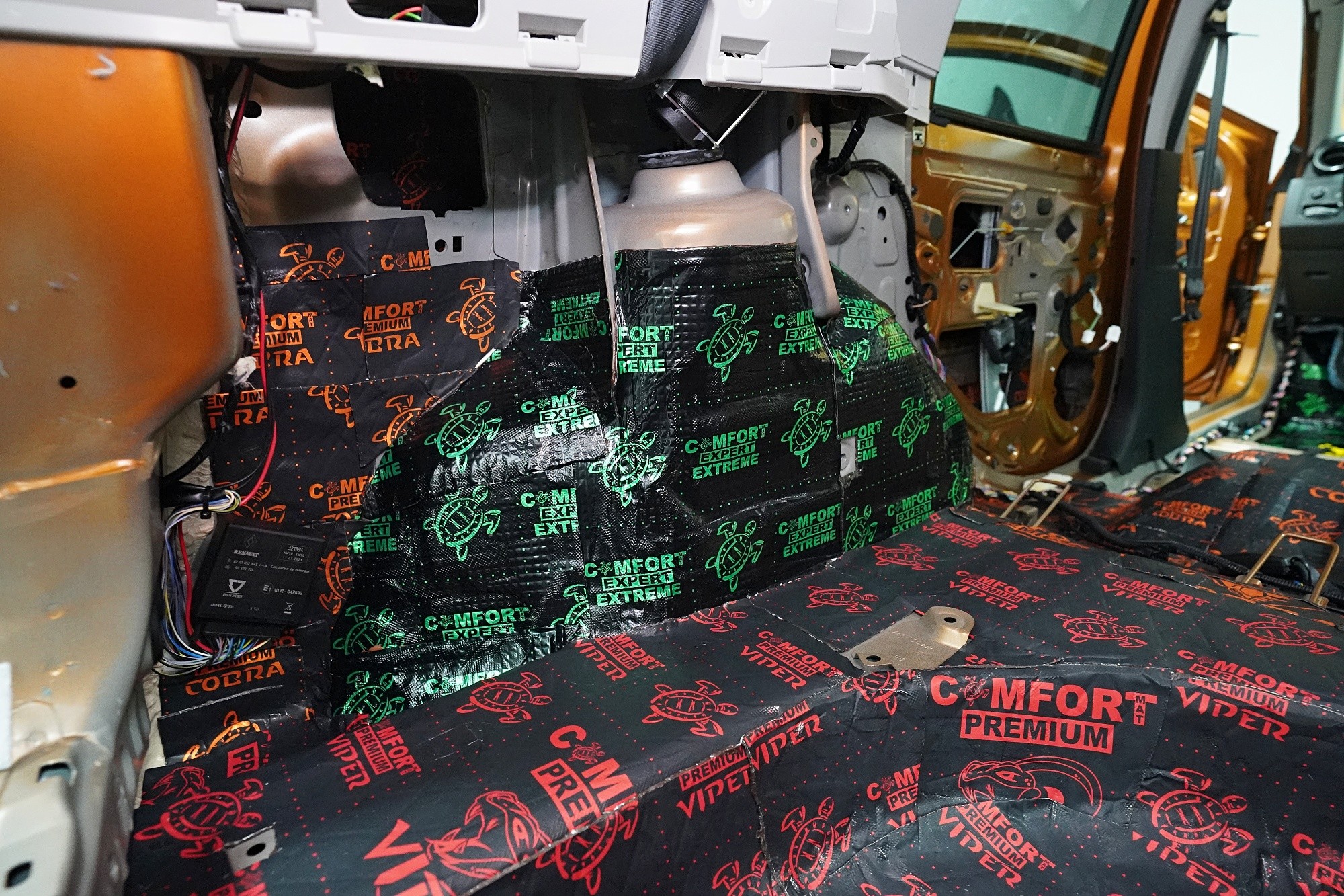 Работим изключително с най-модерните материали на руската компания Comfortmat, която представлява настоящия световен лидер в шумоизолацията на превозни средства. С нашите материали гарантираме най-ефективната звукоизолация на пазара днес.