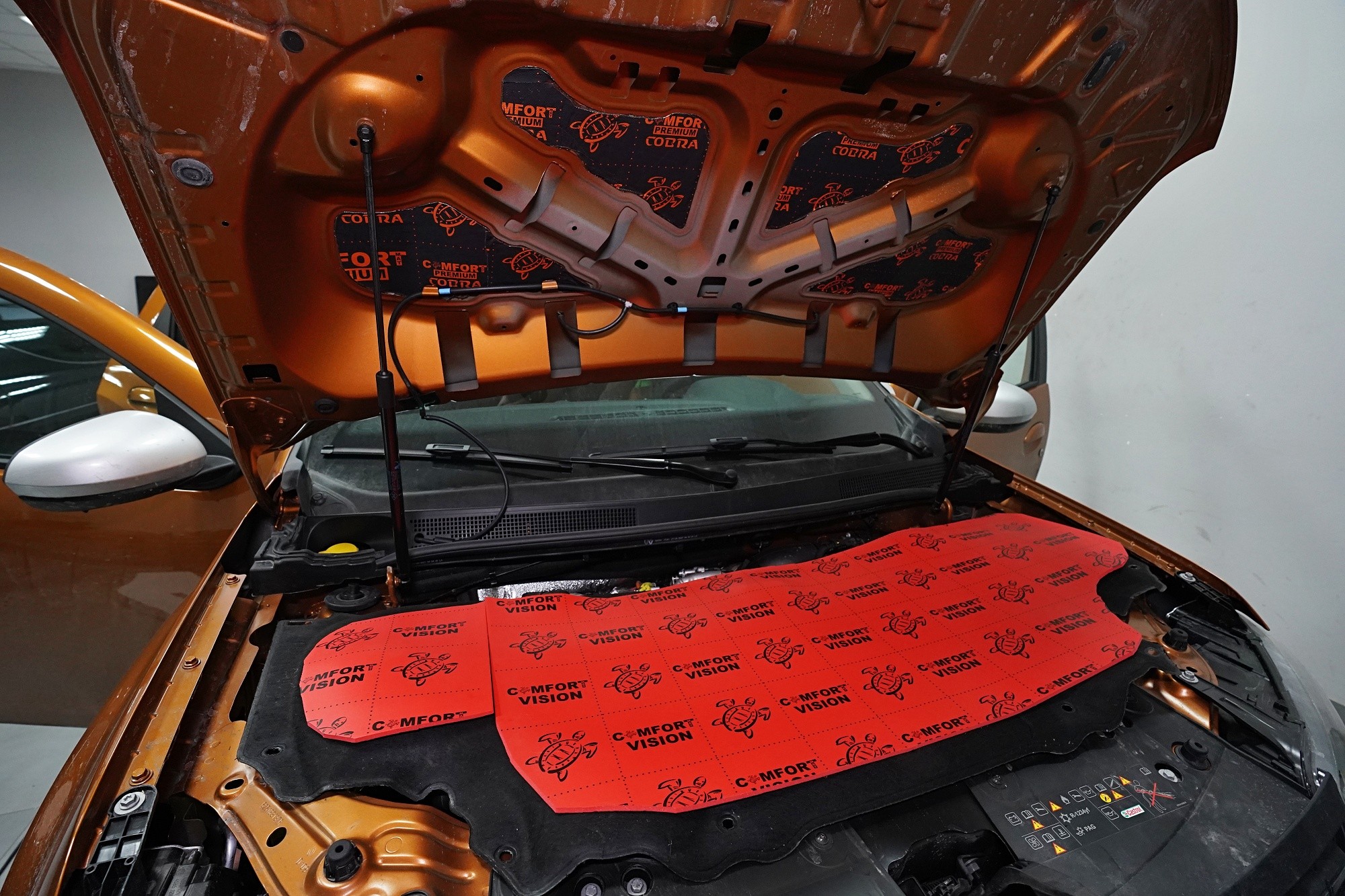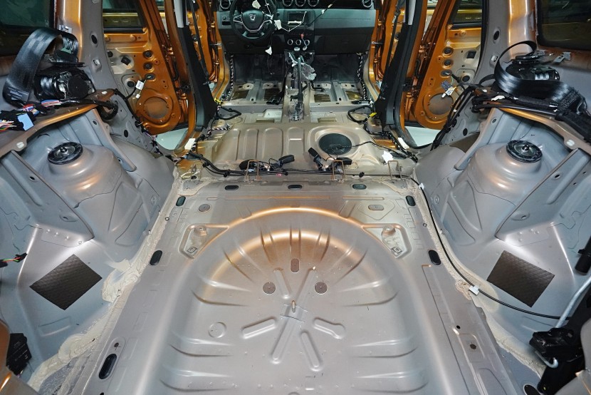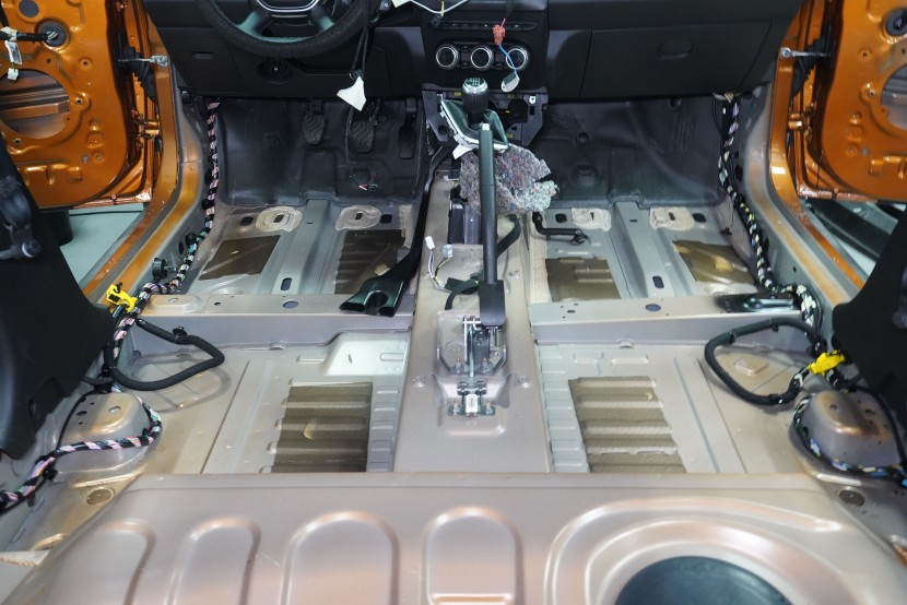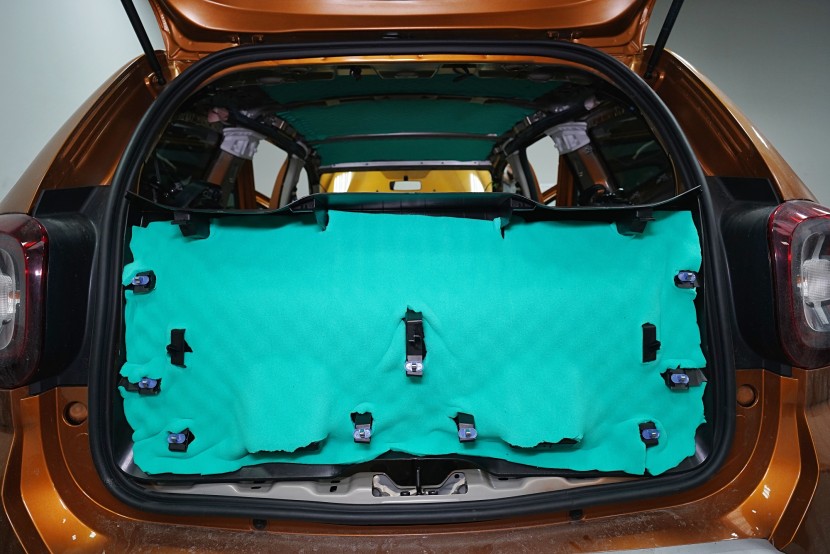 Шумоизолация на автомобила Dacia Duster и смяна на фабричните високоговорители. Правилно предполагате, че първоначалната звукова изолация в този автомобил практически липсва. Точковата защита срещу вибрации в такова количество по-скоро предизвиква усмивка, отколкото доверие в някакъв ефект, а тънката тапицерия на пода и в багажника вече много не може да направи. Резултатът е относително шумен автомобил, което се засилва с покачването на скоростта. Най-големи проблеми традиционно причиняват гумите и долната част на автомобила като цяло и точно на тези области се фокусираме старателно в нашия подобрен пакет шумоизолация Expert Plus. В сравнение с класическия пакет Expert избираме по-ефективни и по-дебели материали и конкретно шумоизолираме предните, задните и петите врати, пода, багажното пространство, покрива, предните и задните калници, таблото и капака на двигателя. Всички важни области на автомобила са шумоизолирани с модерни двуслойни материали и в резултат са приложени четири слоя шумоизолация с различни свойства. В рамките на шумоизолацията заменихме и фабричните високоговорители с популярния комплект на италианския производител Hertz. Ако ви интересува цената само за шумоизолацията, тя беше 44954 Kč. За инсталацията едновременно работят четирима наши техници, които извършват монтажа в рамките на 1 работен ден.