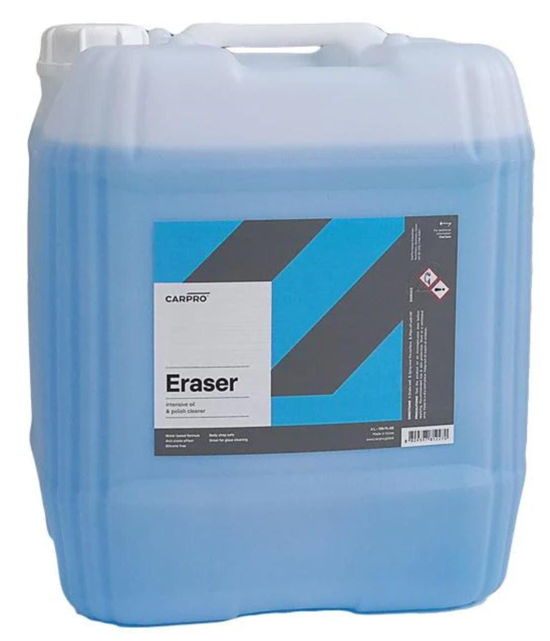 CarPro Eraser е най-добрият и най-безопасният начин да обезмаслите перфектно и да премахнете полиращите пасти от каросерията. Полиращите пасти и лосионите могат да останат напълно невидими на повърхността и едва след пълното им отстраняване се разкрива истинският резултат от полиране на лака. Използването на CarPro Eraser е важна стъпка преди нанасянето на защитни покрития, които предпазват повърхността от прекомерно замърсяване. Eraser не съдържа силикон. Отличен е за употреба на нови автомобили, премахва отпечатъци от пръсти, прах и замърсявания. Почистването на повърхността с CarPro Eraser е ключова стъпка преди нанасянето на защитни покрития като CarPro CQuartz, CarPro FlyBy Forte или CarPro FlyBy30 и значително влияе върху техния адхезионен ефект, както и последващата им издръжливост и функционалност. Отличен бонус са антистатичните компоненти на продукта, които намаляват задържането на прах върху полираните части от лака и по този начин минимизират риска от драскотини по лака по време на нанасяне на финалната защита. Продуктът е на водна основа и е напълно безопасен за лака. За разлика от изопропиловия алкохол (IPA) няма опасност от нарушаване или изсушаване на повърхността. CarPro Eraser е по-ефективен и освен това притежава много приятен свеж аромат.Основни характеристики