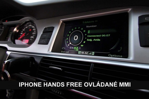 - iPhone Handsfree - преглед на телефонния указател и осъществяване на handsfree обаждания чрез MMI контролера или бутоните на волана (свързване със системен кабел)