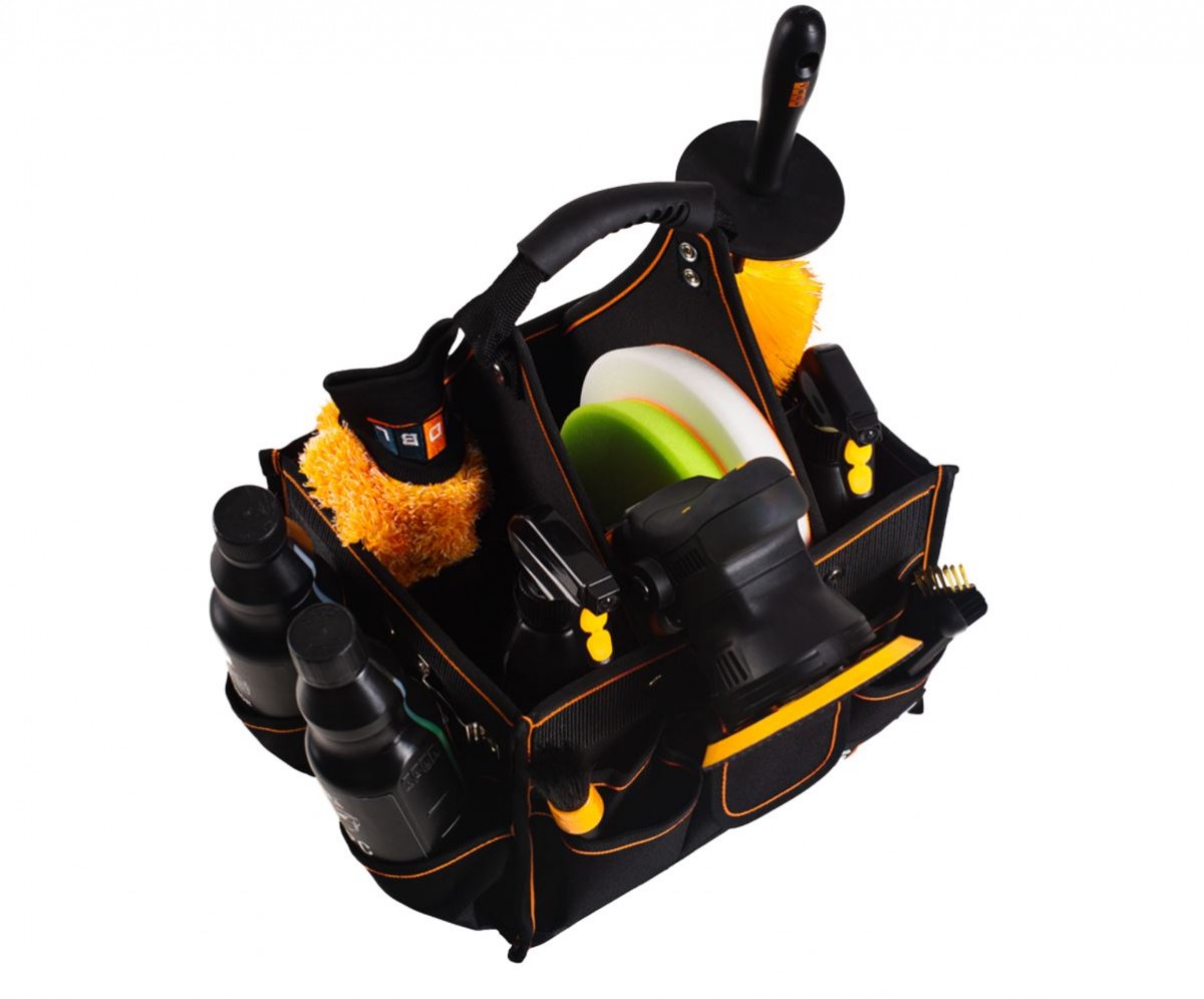 ADBL Necessary е качествена детайлинг чанта от по-малък до среден размер с модулни отделения, които позволяват пренасяне и съхранение на препарати с различни размери. Здрава стоманена рамка защитава вашите препарати от повреди, а твърдото водоустойчиво дъно позволява пренасяне на влажни аксесоари след приключване на работа.