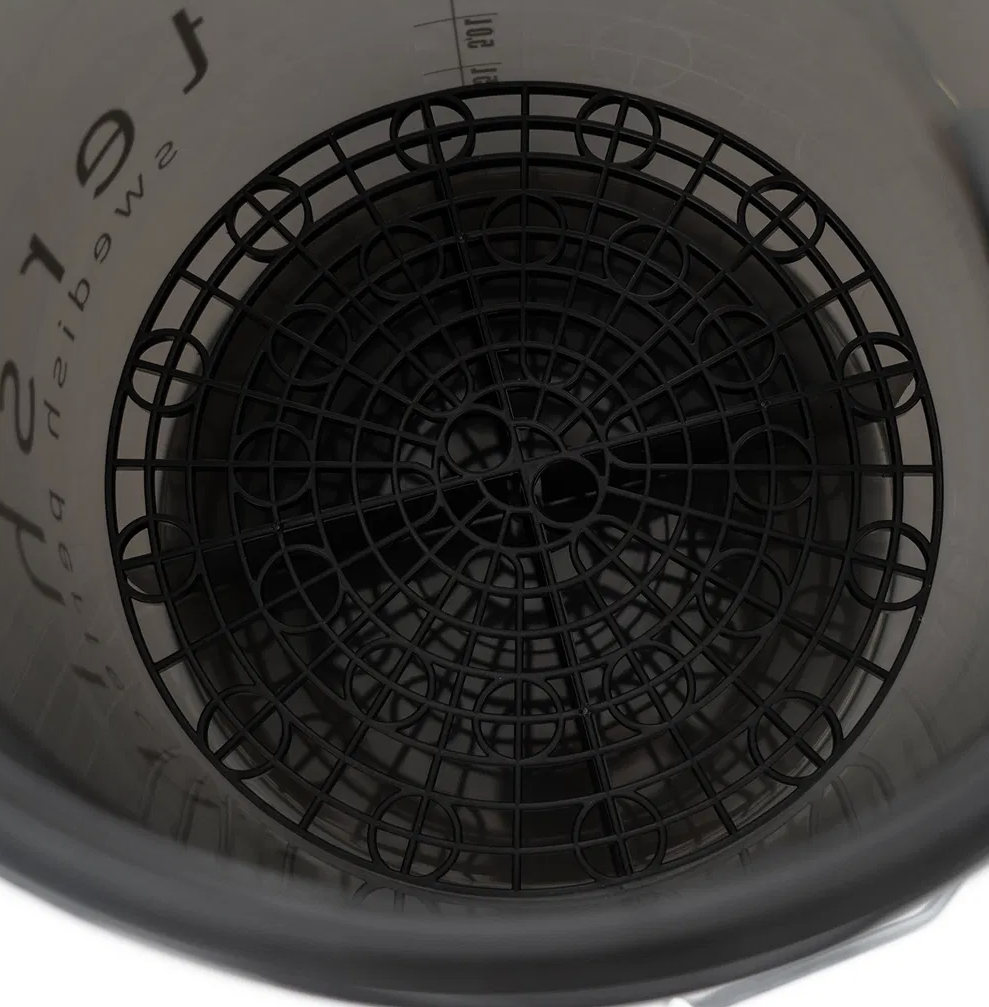 Tershine Wash Bucket е здрава кофа, която побира малко повече от 20 литра. Има ефектно опушено тониране на пластмасата, така че веднага ще видите колко вода остава в кофата. Grid guard мрежата и водоустойчивият капак са част от опаковката, както и отпечатаното лого Tershine и мерителната скала в литри отстрани.