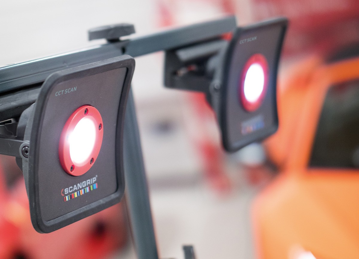 SCANGRIP MULTIMATCH R е незаменим помощник за осветяване на големи повърхности при полиране на лака, боядисване на панели или почистване на различни видове повърхности. Изключително високият CRI (т.нар. "индекс на възпроизвеждане на цветовете") осигурява максимално вярно представяне на цветовете, което гарантира висок контраст и способността да се виждат дори най-малките цветови отклонения. В сравнение с предишния модел модернизираният MULTIMATCH R има уникалната функция CCT SCAN. Активирайки функцията CCT SCAN, работната лампа автоматично ще сканира повърхността на обекта през целия спектър на цветната температура в диапазона от 2500K до 6500K. Функцията CCT SCAN може да бъде заключена по всяко време, което ви позволява да адаптирате светлината към конкретната проверъчна задача. Това е перфектен инструмент за професионални детайлъри, който осигурява идеални условия за откриване на несъвършенства. MULTIMATCH R се доставя с удобен за потребителя дисплей, който показва капацитета на батерията и оставащото работно време. Благодарение на вградената батерия и USB конектор лампата служи и като powerbank, от която можете да зареждате мобилния си телефон, таблет или друга презареждаща се лампа SCANGRIP! Корпусът на лампата е изработен от леян алуминий, което я прави изключително здрава и удароустойчива, за да издържа добре дори на силни удари и сблъсъци. Същевременно е прахозащитена и водоустойчива (IP67), а лещите, покриващи LED чипа, са устойчиви на всички видове химически разтворители. Благодарение на дръжката лампата може лесно да се пренася, а гъвкавият статив, с който лампата може да се нагласи под желания ъгъл, може да се използва и за окачване. Дръжката освен това съдържа силни вградени магнити и така светлината MULTIMATCH R лесно може да се закрепи към метална конструкция на вашето работно място. Неограничени възможности се постигат особено при монтиране на лампата на статив SCANGRIP TRIPOD или на подвижната стойка SCANGRIP WHEEL STAND. SCANGRIP MULTIMATCH R има много висока стойност на CRI (т.нар. "индекс на възпроизвеждане на цветовете"), който осигурява вярно, по-живо и по-естествено възпроизвеждане на цветовете и позволява да се наблюдават дори най-малките разлики в нюанса и контраста на цветната повърхност. Благодарение на това ще видите по-добре и по-лесно всички дефекти под повърхността на лака, повърхностните несъвършенства, както и цветови различия и аномалии. MULTIMATCH R е отличен за всички видове лакове, за тяхната реновация, корекция, полиране и други дейности, където се изисква висококачествено осветление.