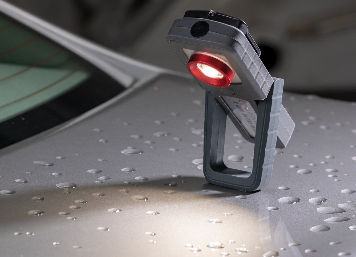 SCANGRIP SUNMATCH 4 е най-модерната и технически най-напреднала преносима детайлинг лампа в света! Благодарение на вградения клипс с магнит можете да я използвате навсякъде, където трябва да извършите инспекция и проверка на лака, да търсите дефекти като драскотини, петна, грапавини или цветови несъвършенства. Гъвкавата глава на лампата може да се върти на 180°, така че можете по всяко време да закрепите лампата към метална повърхност и да я насочите точно според вашите нужди! Отзад ще намерите практичен, здрав, въртящ се кукач за окачване. Лампата има много здрава конструкция, отговаряща на стандарта IP65, устойчива на прах, удари и вода. Очаквано, лещата на лампата е устойчива на всички видове разтворители! В сравнение с предишния модел модернизираният MULTIMATCH R притежава уникална функция CCT SCAN. Активирайки функцията CCT SCAN, работната лампа автоматично ще сканира повърхността на обекта със спектър на цветните температури в диапазона от 2 500K до 6 500K. Функцията CCT SCAN може да бъде заключена по всяко време и по този начин ще можете да адаптирате светлината към конкретна инспекционна задача. Това е перфектният инструмент за професионални детайлъри, който осигурява идеални условия за откриване на несъвършенства. За предотвратяване на прегряване на лампата е внедрена интелигентна система, която след 3 минути непрекъсната работа на по-висока мощност превключва лампата на по-слаба интензивност. SCANGRIP SUNMATCH 4 се доставя с качествен Li-Ion акумулатор и интелигентен индикатор за състоянието отпред, благодарение на който пестите батерията, а вградената контролна система предотвратява риска от нейното прегряване. SUNMATCH 4 има много висока стойност на CRI (т.нар. "индекс на цветопредаване"), който гарантира вярно, по-живо и по-естествено възпроизвеждане на цветовете и позволява да се забележат и най-малките разлики в нюанса и контраста на цветната повърхност. Благодарение на това по-добре и по-лесно ще видите всички подповърхностни дефекти на лака, повърхностните несъвършенства и цветови отклонения и аномалии. SUNMATCH 4 е отличен за всички видове лакове, тяхната реставрация, корекция, полиране и други операции, където се изисква висококачествено осветление.Технически параметри на детайлинг лампата Scangrip Sunmatch 4