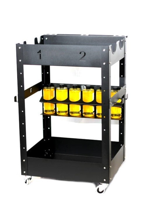 Poka Premium Bottle Holder до 0,5 л е професионален държач за бутилки, пригоден както за монтиране на стена, така и за детайлинг колички на този производител. Държачът е проектиран за съхранение на до 6 бутилки с вместимост до 0,5 л. С конструкцията си е идеален не само за фиксиране на стена, но и като модулна част за разширяване на функционалността на detailing количките Poka Premium (в този случай могат да се използват модулни крака с множество отвори). Благодарение на монтажните отвори държачът е устойчив и на тежки бутилки с полиращи пасти. Изработен е от висококачествено, прецизно рязана и огъната стомана, която накрая е покрита с прахово покритие за възможно най-голяма устойчивост на окисляване.