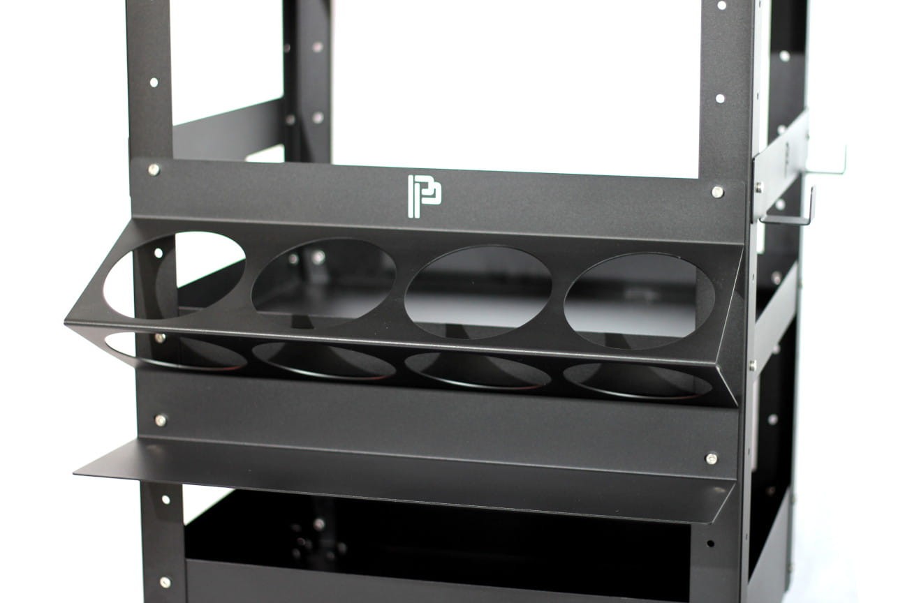 Poka Premium Bottle Holder до 1,5 л е професионален държач за бутилки, пригоден както за монтиране на стена, така и за детайлинг колички на този производител. Държачът е проектиран за съхранение на до 4 бутилки с вместимост до 1,5 л. С конструкцията си е идеален не само за фиксиране на стена, но и като модулна част за разширяване на функционалността на detailing количките Poka Premium (в този случай могат да се използват модулни крака с множество отвори). Благодарение на четирите монтажни отвора държачът е устойчив и на тежки бутилки с полиращи пасти. Изработен е от висококачествено, прецизно рязана и огъната стомана, която е покрита с прахово покритие за възможно най-голяма устойчивост на окисляване.