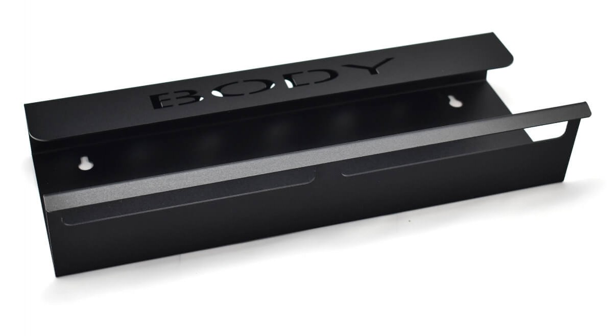 Функционален и практичен държач за четки и смесителни бутилки. Горните отвори са подходящи за повечето налични на пазара четки, а по-ниските отвори са предвидени за повечето видове пулверизатори. Здрава конструкция издържа товар над 10 kg. Отворите за монтаж към стената са разположени в горната част на рафта, което гарантира пълна стабилност. Държачът е изработен от качествен метал, боядисан с прахово покритие, което предпазва от окисляване.