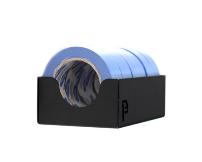 Практична и функционална полица за съхранение на маскиращи ленти. Отворите от страните осигуряват удобно изваждане на лентата. Рафтът побира всяка маскираща лента, която е налична на пазара в ЕС. Отворите за монтаж към стената са разположени в задната част на рафта, което гарантира стабилност. Качественият метал е боядисан с прахово покритие, което предпазва от окисляване.