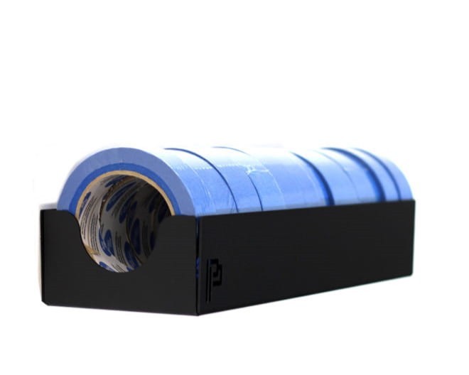 Практична и функционална полица за съхранение на маскиращи ленти. Отворите отстрани гарантират удобно изваждане на лентата. Полицата побира всяка маскираща лента, налична на европейския пазар. Монтажните отвори за прикрепяне към стената са в задната част на полицата и благодарение на това осигуряват стабилност. Качественият метал е боядисан с черна прахова боя, която предпазва полица от окисляване.