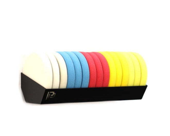 Практична и функционална полица за съхранение на полиращи дискове с различни размери. Специално проектиран канал позволява лесно поставяне и изваждане на диска. Полица е подходяща за максимум 14 диска с диаметър от 83 до 165 mm. Разстояние между винтовете 360 mm. Монтажните отвори за завинтване към стената са разположени както в горната, така и в долната част на полицата, което гарантира пълна стабилност. Качественият метал е боядисан с прахова боя, която го защитава от окисление. На лицевата страна има ефектно лого Poka Premium.