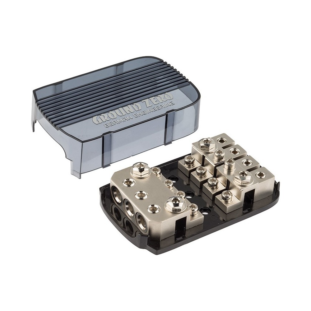 Открийте масивния държач за предпазители GZFH 3,50/4,20 ANL/MANL от Ground Zero. Той се отличава с здрава конструкция от анодизиран мед, поради което е проектиран за дълъг експлоатационен живот. Освен това идва с полезни функции, като държач за предпазители ANL или Mini-ANL и вход 3x 50 mm² и изход 4x 20 mm². Съдържа още винтови клеми и пластмасов капак. Препоръчаните стойности на предпазителите ви позволяват да определите и използвате оптималната и максималната мощност на предпазителите въз основа на сечението на кабела. Бъдете сигурни, че с Ground Zero имате под ръка висококачествен и надежден инструмент.Основни характеристики