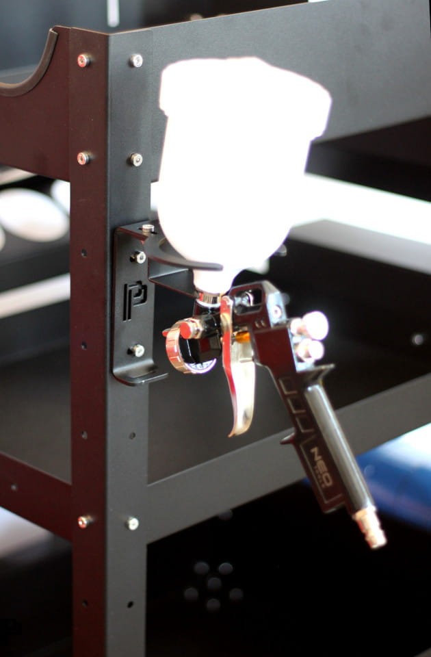 Poka Premium Single holder for Spray Gun е универсален държач за една спрей пистолет с възможност за закрепване на стена или на детайлинг количка. Висококачественият държач е подходящ за безопасно съхранение на спрей пистолети с регулируема опора за различни размери съдове за течности. Няма остри ръбове за максимална защита. Държачът може да се монтира и на детайлинг количка Poka Premium. Изработен е от висококачествена поцинкована стомана 3 мм. Прецизно рязан и огънат, накрая боядисан с прахова боя за осигуряване на максимална защита срещу окисляване.
