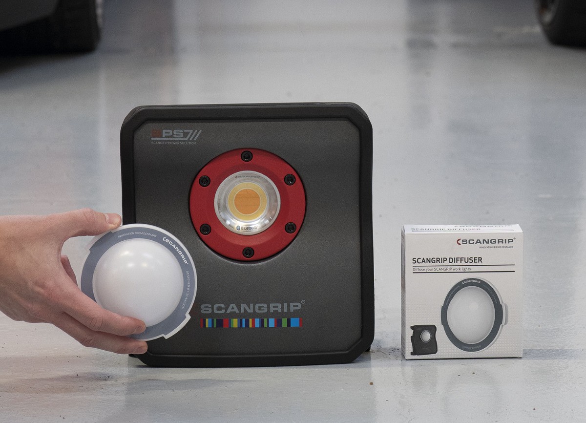 Разсейвателят на светлината е проектиран да разпръсква и омекотява светлината, позволявайки ви да осветите целия работен участък и да избегнете твърди сенки. Той ви дава по-голяма функционалност и нови възможности да адаптирате работното си осветление още по-конкретно към дадена задача. Капакът е невероятно гладък и лек. Силните вградени магнити позволяват лесен и сигурен монтаж на капака върху лампата SCANGRIP. Използването на SCANGRIP DIFFUSER заедно с MULTIMATCH 3 значително увеличава функционалността на работната лампа, тъй като дифузорът омекотява и разпръсква светлината по повърхността на автомобила, като така избягвате резки светлинни петна и остри сенки.