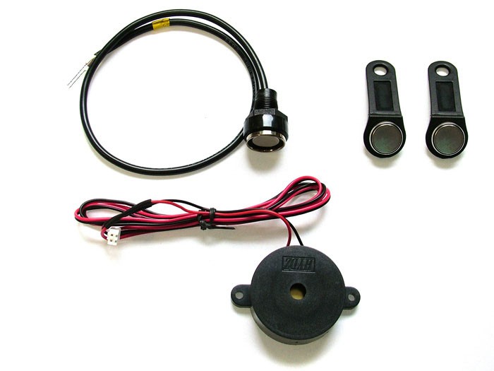 Комплект за идентификация на шофьора за GPS устройство GPS Smart. Комплектът съдържа 2 бр. докосващи ID бутона, 1 бр. четец на ID чипове, 1 бр. PES 21N за акустично предупреждение.