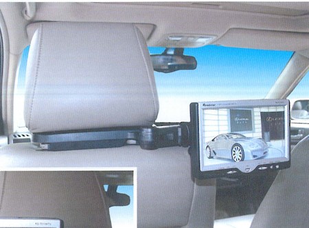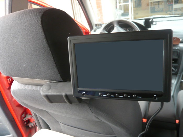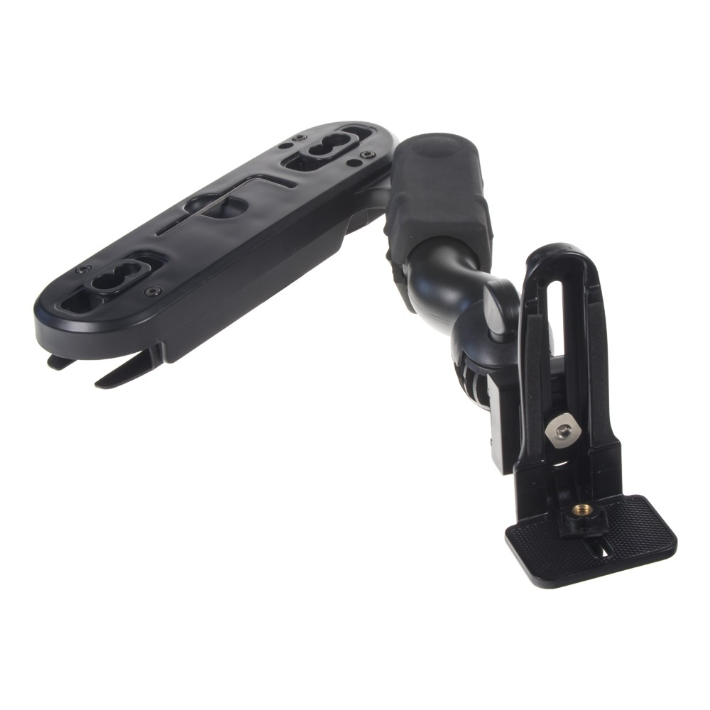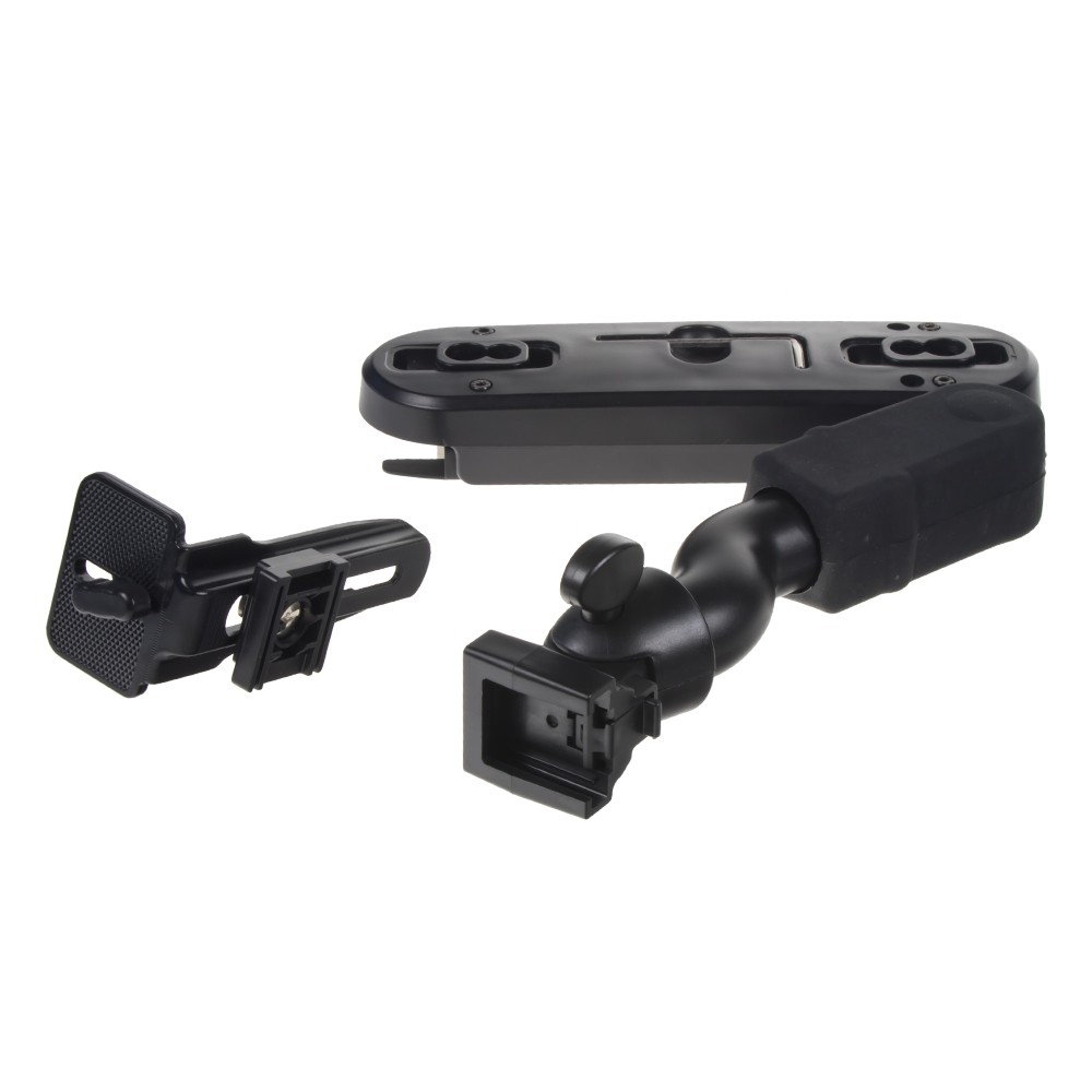 Много здрава шарнирна стойка с висящо рамо за поставяне на монитор между предните седалки.