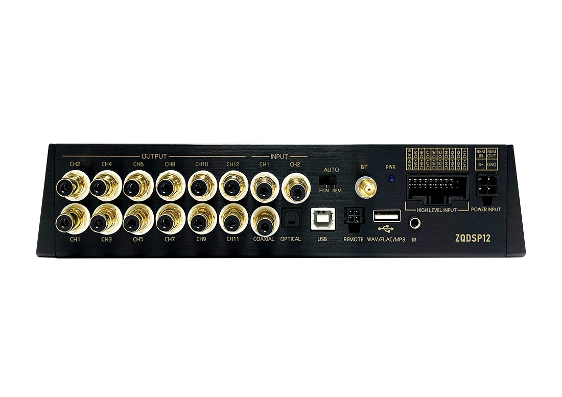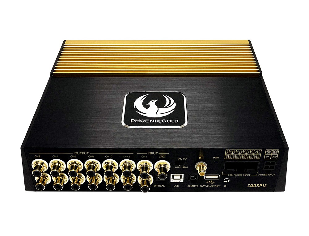 Phoenix Gold ZQDSP12 е водещ DSP процесор, който принадлежи към най-високата моделна серия ZQ на Phoenix Gold. Процесорът разполага с богато оборудване с 12 обработваеми канала, широка свързаност, интегриран медиен плейър и Bluetooth връзка. Както и другите продукти от серията ZQ, процесорът ZQDSP12 предоставя впечатляващи звукови характеристики и всички функции, необходими за създаване на перфектната звукова настройка, като напълно регулируеми филтри, параметричен еквалайзер с регулируемо Q или забавяне на сигнала. Общият белег на серията ZQ е и луксозният дизайн в черно-златно изпълнение с използване на изискани материали. Процесорът ZQDSP12 е есенцията на основните ценности на Phoenix Gold и съдържа много от оригиналните производствени технологии, които са направили марката известна от самото начало. А също така използва първокласни компоненти от целия свят. Двоен източник на захранване заедно с high-end немски и японски кондензатори Wima и Nichicon гарантират ефективно и непрекъснато захранване. Високопроизводителните потенциометри от най-високо качество подпомагат работата, докато екранираните сърцевини на трансформаторите, произведени в Германия, осигуряват чисто подаване на енергия през целия процесор. Можете да разчитате на отлична свързаност благодарение на клемите позлатени с 24-каратово злато, които украсяват и печатните платки. Всички тези технологични предимства допринесоха за създаването на уникална серия sound quality усилватели, които ще спечелят сърцата на много аудио ентусиасти.
