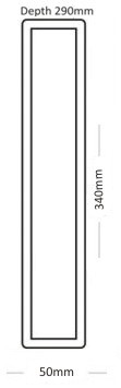 | Размери на корпуса на тонколонатаРазмерите на корпуса на тонколоната се дават като височина, ширина и дълбочина, която често е по-голяма в долната част, отколкото в горната, поради скосената задна стена. | 855 x 450/350 x 385 мм |