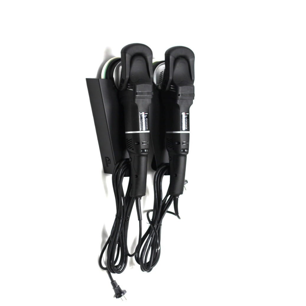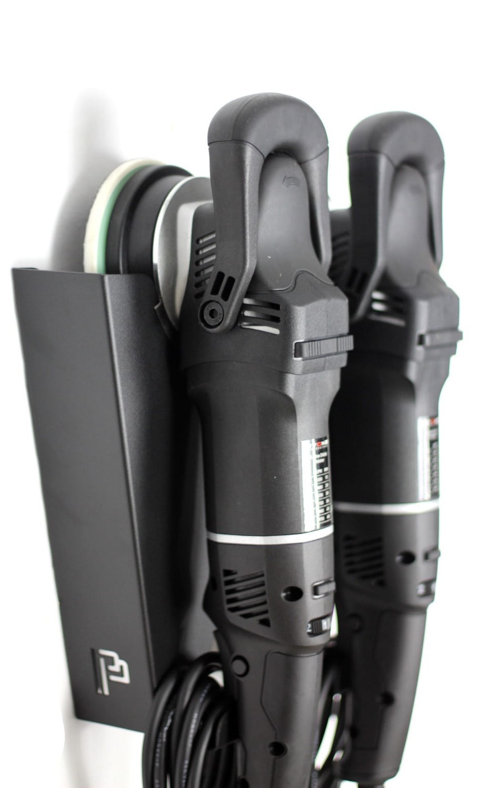 Висококачествен държач за две полиращи машини с дръжки за кабелите, благодарение на което заемат наистина много малко място. Държачът е подходящ както за DA, така и за ротационни машини с адаптери с размер 30 - 180 mm. Монтажните отвори за прикрепяне към стената са разположени в горната част на лавицата, което гарантира пълна стабилност. Държачът е изработен от качествен метал, който е боядисан с прахово покритие, което го предпазва от окисляване.