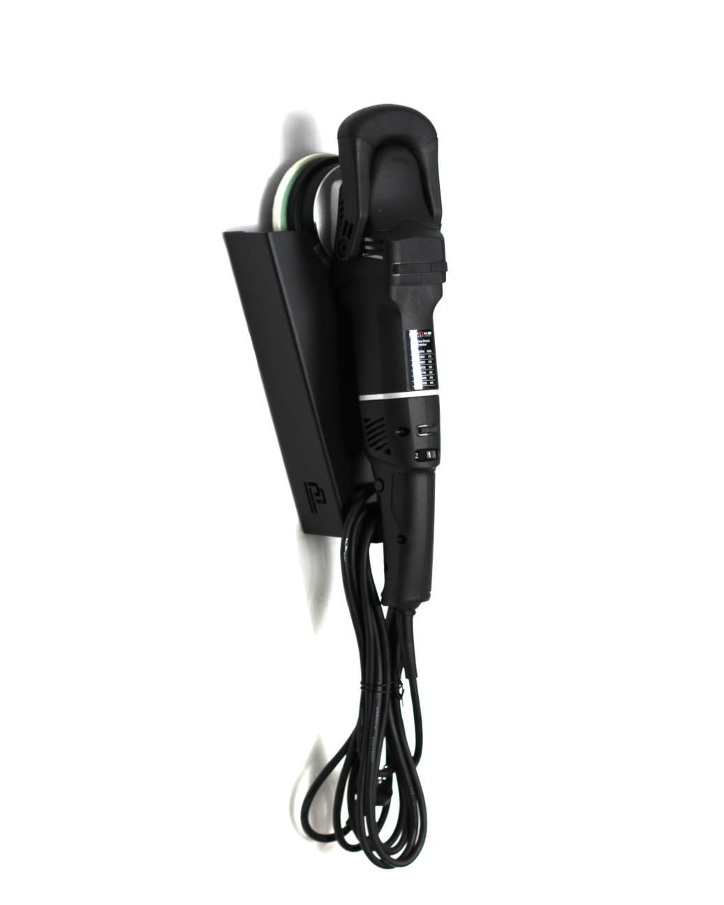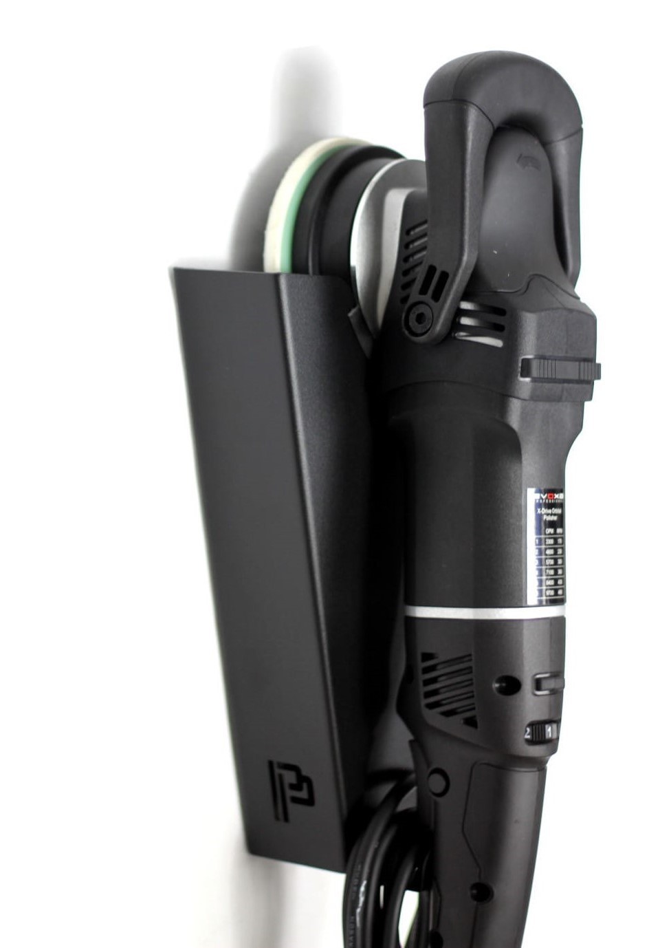 Висококачествен държач за една полираща машина с държач за кабел, благодарение на което заема много малко място. Държачът е подходящ както за DA, така и за ротационни машини с носещи дискове с размер 30 до 180 mm. Отворите за монтиране на стената са разположени в горната част на рафта, поради което държачът е много стабилен. Държачът е изработен от качествен метал, който е покрит с прахова боя, предпазваща от окисляване.
