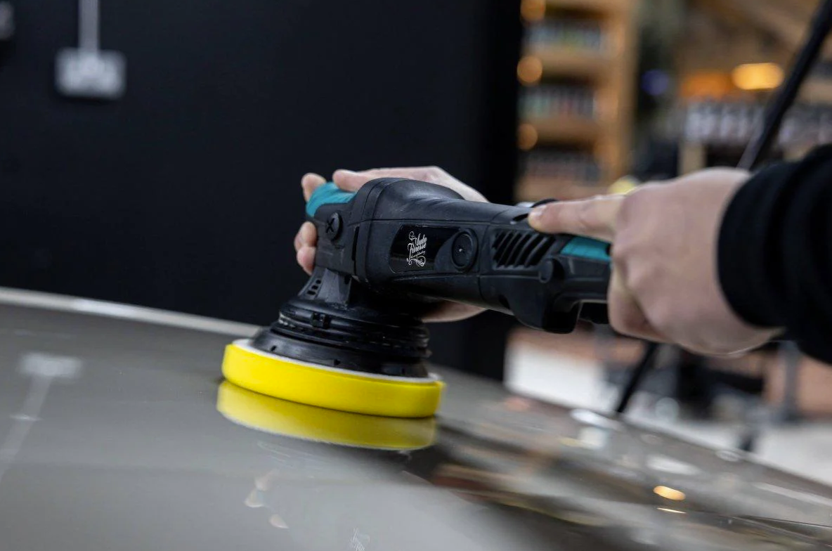 - Намажете пянения диск първо с лубрикант, след това нанесете 3-4 капки полираща паста върху него - изборът на диск много зависи от твърдостта на лака. Като общо правило при едностъпковите пасти препоръчваме използването на средно твърди полиращи дискове. Все пак започнете по-скоро с по-мека, отколкото с по-твърда опция.