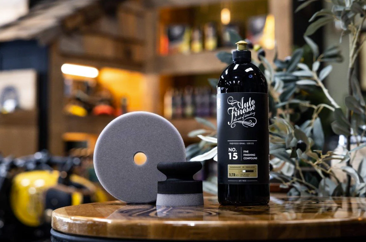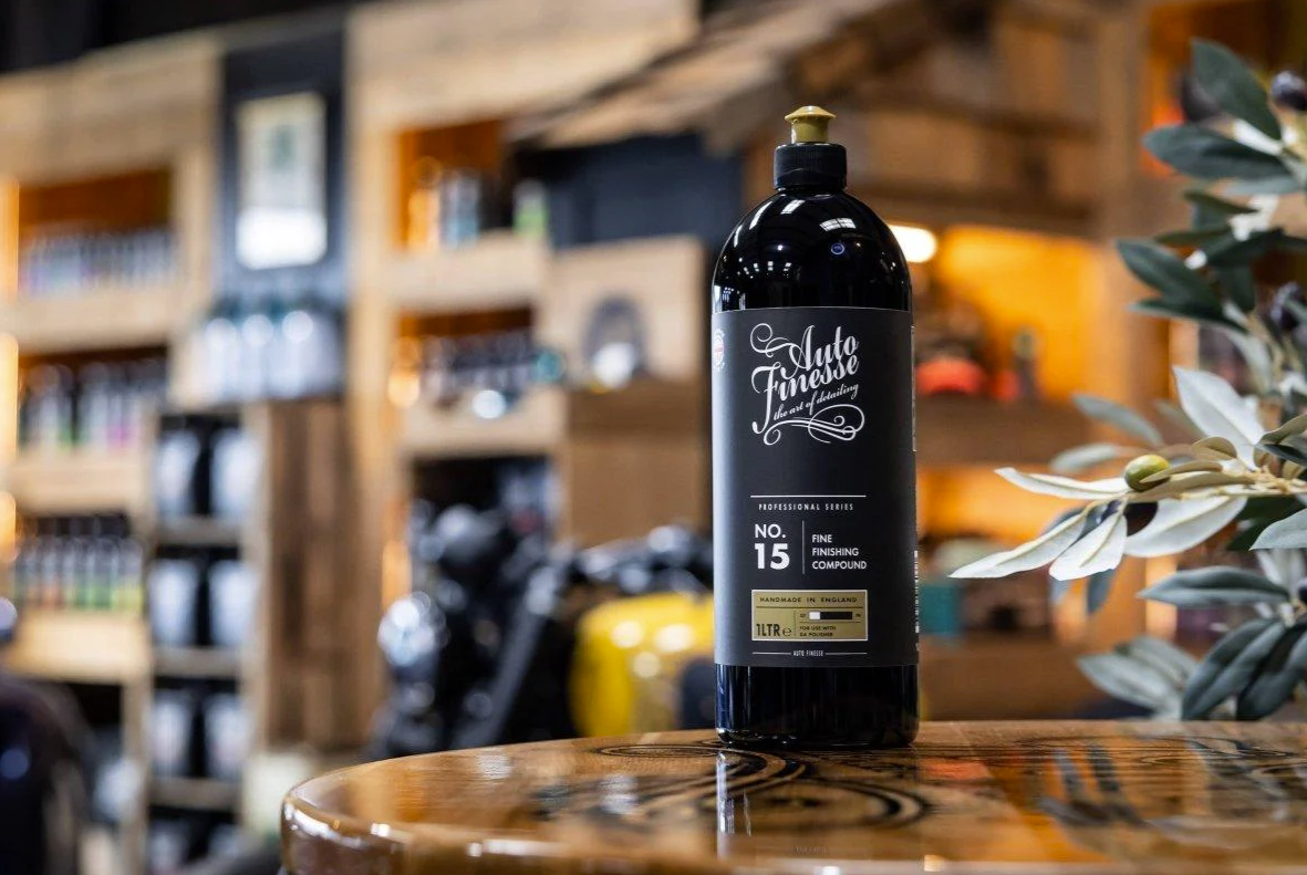 Auto Finesse Fine Finishing Compound No:15 е фина полираща паста от категорията Professional за финално полиране и постигане на максимален блясък и дълбочина на лака. Това е последната фаза при обновяване на лака от новата серия полиращи смеси. Финиширащата паста No:15 е продуктът, който дава допълнителна дълбочина и блясък, за които сте мечтали. No:15 има и нулев прахов ефект. Перфектно се съчетава с мек пянен диск с затворени клетки.