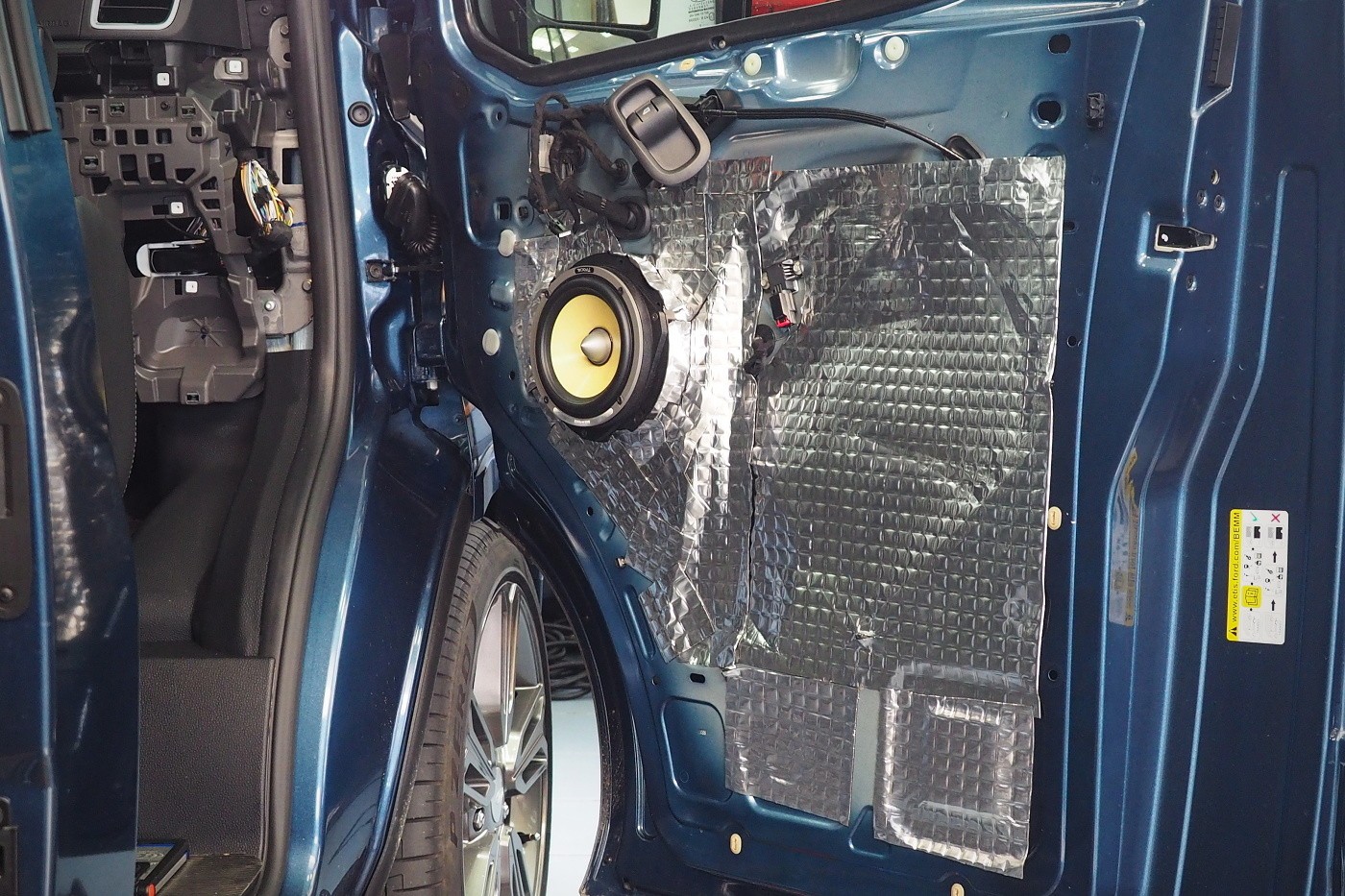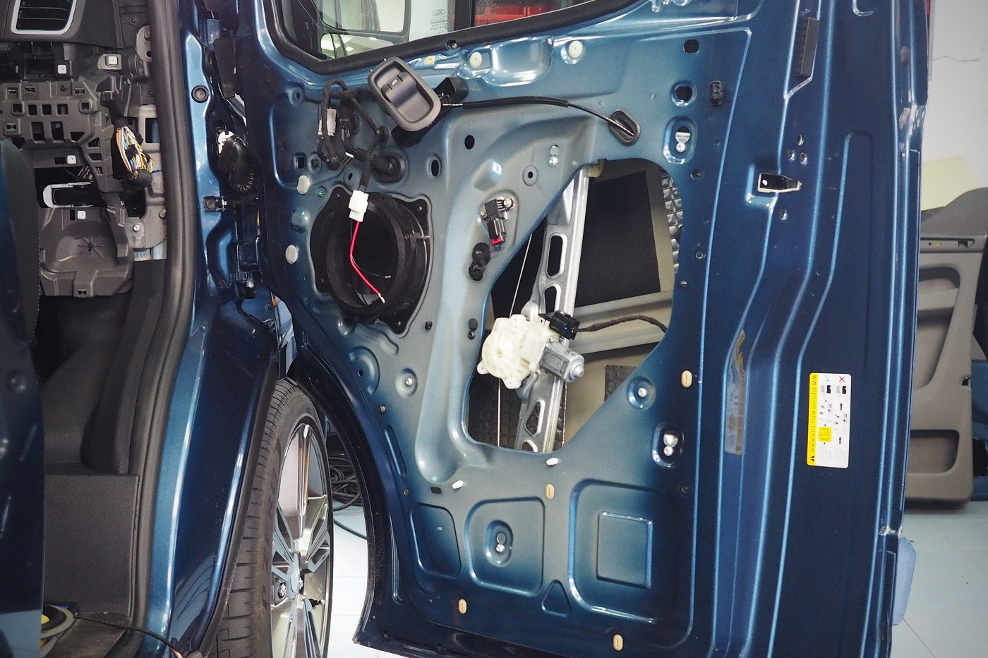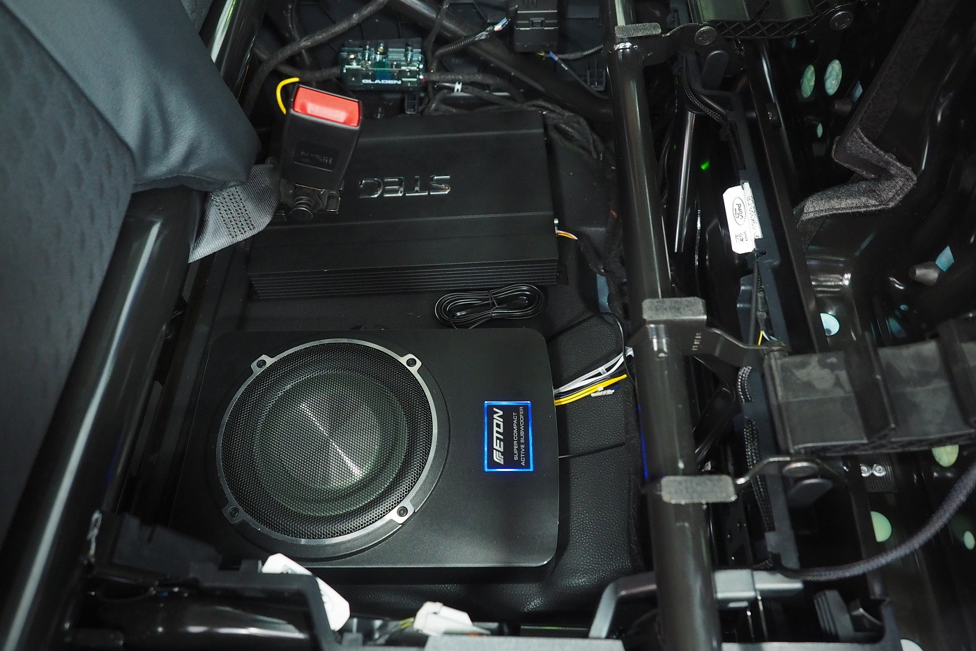 Инсталиране на ново озвучаване в автомобила Ford Custom. В шумоизолираните врати инсталирахме аудиосистема над стандартната от френския производител Focal. За максимално използване ги свързахме към двуканален усилвател Steg, който се отличава с много качествен звук и идеално пасва на новите високоговорители. Усилвателят заедно с активния субуфър Eton скрихме под седалката на пътника.