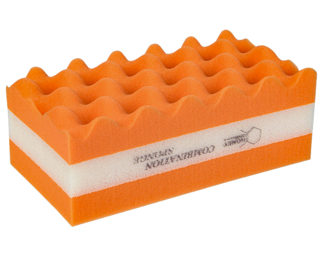 Гъбата за миене Honey COMBination Combination Sponge се състои от три външни слоя, изработени от специално подбрана пяна с отворени клетки. Характеризира се с висока издръжливост и изключителна мекота, благодарение на което е много щадяща към лака. Технологията на използваната пяна гарантира несравнима дълготрайност и устойчивост на износване в сравнение с други продукти от този тип. Благодарение на тристепенната си конструкция гъбата запазва формата си, не губи обем и при употреба не се "усуква". Долният слой има порези, които увеличават почистващата й сила и повърхността, която събира замърсявания, в сравнение с плоска повърхност, което позволява на гъбата да абсорбира повече замърсявания, които биха могли да причинят микронадрасквания на лака. Горният слой е от пяна със специална вълниста форма, която осигурява по-лесен достъп до труднодостъпни места и улеснява воденето по повърхността на лака. По-малката контактна площ на горния слой води до по-малко триене, което го прави по-щадящ към меки лакове. Тези два слоя са свързани със специална, много мека и еластична пяна, която осигурява отлична управляемост и адаптация дори към най-огънатите части. Освен това гъбата може отлично да образува пяна с шампоан — достатъчни са няколко натискания.