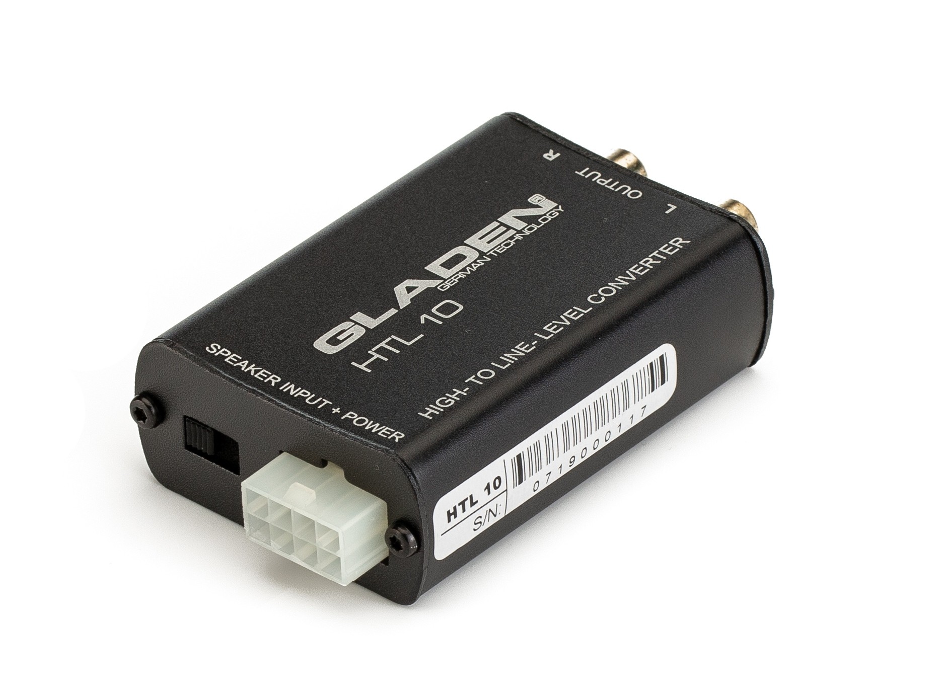 Gladen HTL 10 е усъвършенстван high/low конвертор с функция за автоматично включване. Предимство е галваничната изолация, която може да погълне по-голямата част от високочестотните смущения и предотвратява земни контури.