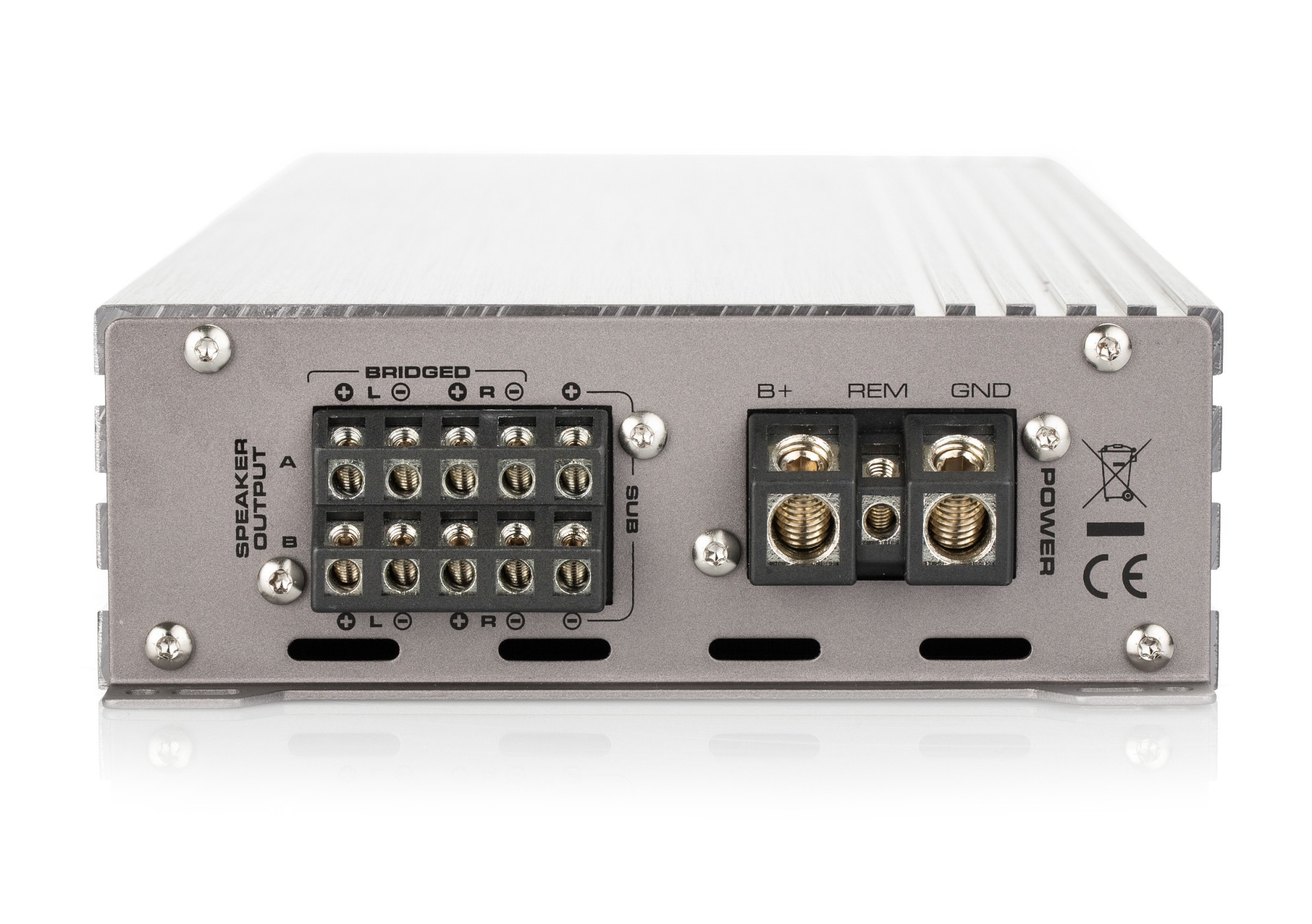 | Брой каналиУсилвателите се разделят на: - моноблокове - 2-канални - 3-канални - 4-канални - 5-канални - 6-канални - многоканални Всеки канал служи за захранване на един високоговорител при коаксиален тип или на една страна, ако става въпрос за компонентни високоговорители. Усилвателите от тип моноблок се използват предимно за субуфери. 2-каналните са подходящи както за субуфери, така и например за преден чифт високоговорители в автомобила. 3-каналните се използват за предни или задни високоговорители + субуфер. 4-каналните се използват за предни + задни високоговорители или 1 чифт високоговорители + субуфер. 5- или 6-каналните обикновено се използват за 2 чифта високоговорители + субуфер. Бриджиране означава свързване на усилвателя в мост, когато се използва + полюс от един канал и - полюс от другия канал. В повечето случаи това е означено на усилвателя като "BRIDGED". | 5 |