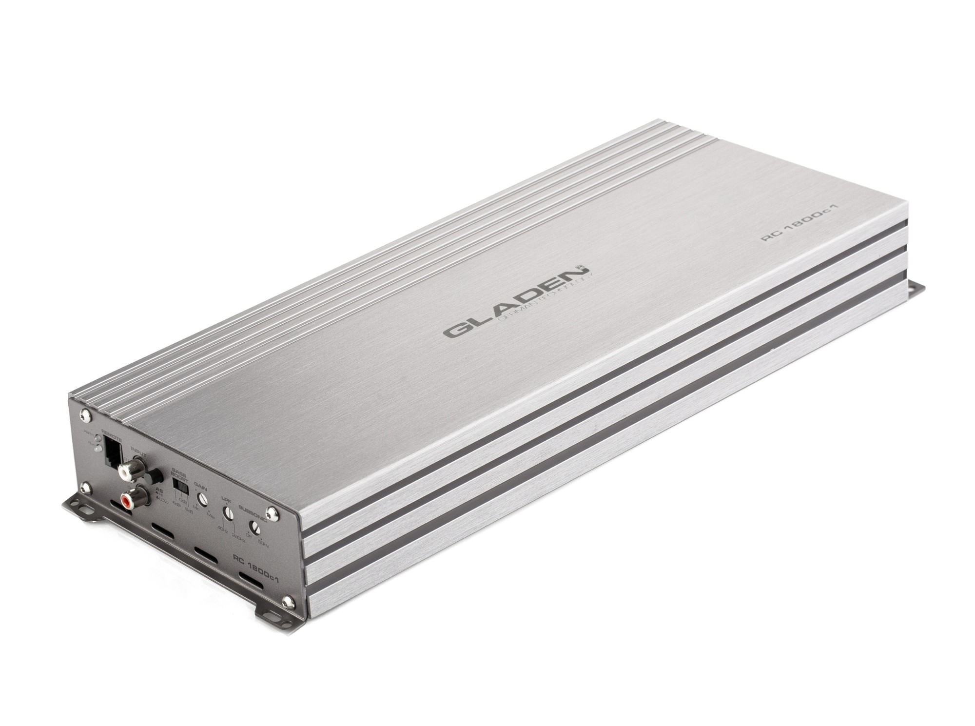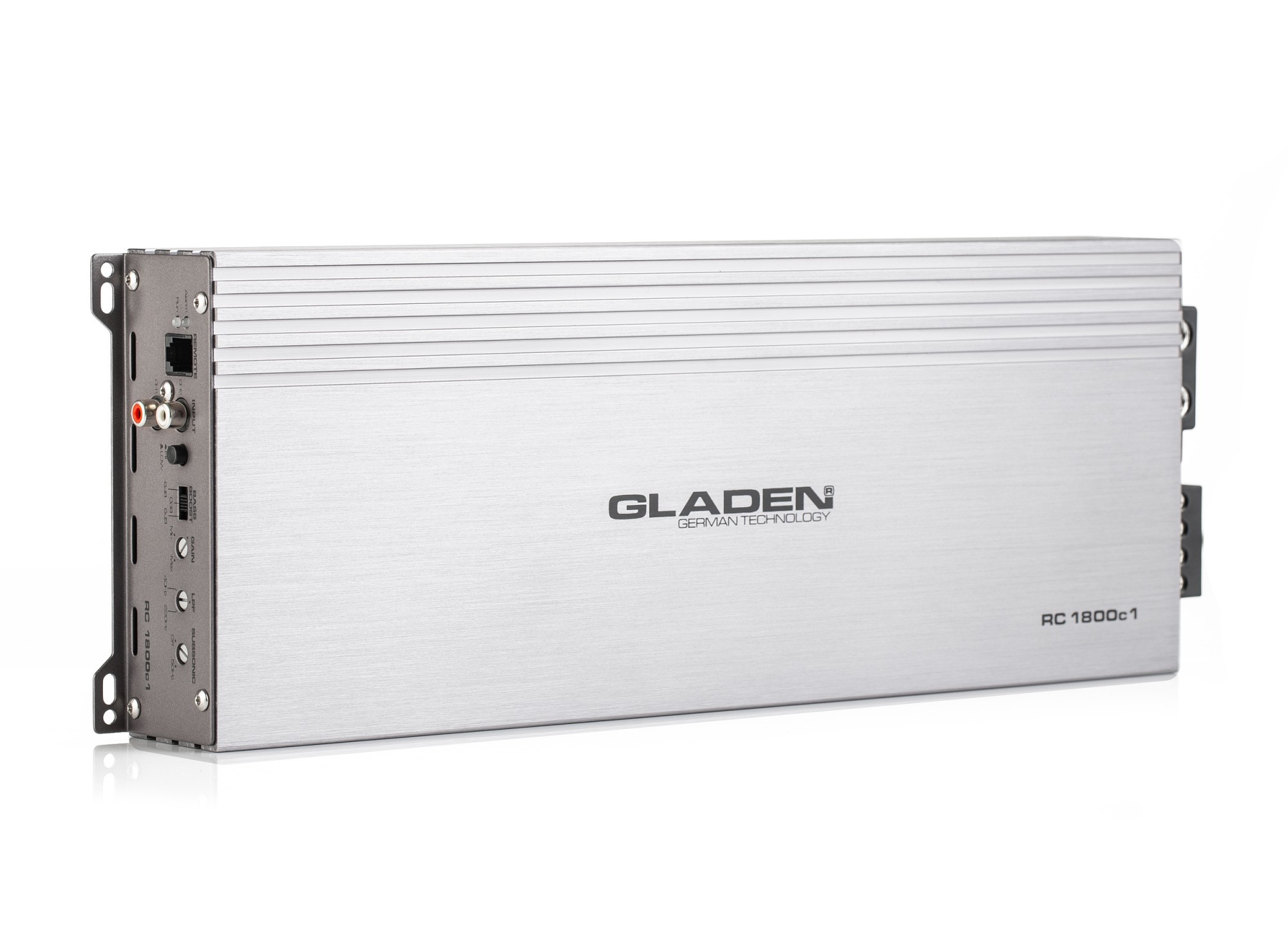 Качественият усилвател е основата на всяка автомобилна аудио система. Той е способен да предаде музиката на говорителите с висока и ненарушена динамика. Усилвателите от серията RC са разработени и произведени със същия висок стандарт като всички продукти на Gladen. С практични функции като кросоувър или High/Low преобразувател, усилвателите RC на Gladen представляват важен фундамент за вашата автомобилна HiFi система. За да бъде серията RC пълна, беше необходимо да се предложи и мощен моноблок на разумна цена. За тази цел е създаден моделът Gladen RC 1800c1, който развива 1,8 kW RMS при 1 ома, което е много добра оферта в съответната ценова категория. Освен това усилвателят разполага с вграден High/Low преобразувател с функция Auto Sense и възможност за свързване на дистанционно управление.Основни характеристики на усилвателя Gladen RC 1800C1