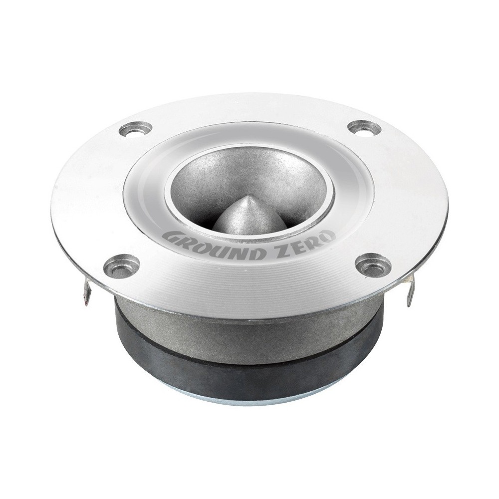 | Тип на високоговорителитеКоаксиални високоговорители: Коаксиалните високоговорители се характеризират с конструкция, наречена всичко в едно. Високочестотният и среднобасовият говорител са в един и същ кош. Предимството е по-лесен монтаж, но поради свързването или близостта на честотните диапазони в един говорител обикновено се понижава качеството на звука. Обикновено в центъра на среднобасовия говорител се намира високочестотният говорител, чиито звукова бобина работи във втората въздушна междина на общия магнитен кръг. Коаксиален говорител с три честотни диапазона се състои от среднобасов говорител, отпред на специален носач е поставен средночестотният говорител и отделен високочестотен. Компонентни високоговорители: Компонентните високоговорители се отличават с разделянето на отделни честотни диапазони: високочестотен + среднобасов + евентуално басов диапазон. Отделните говорители могат да бъдат разположени напълно отделно, което води до по-добро звуково и акустично представяне. В огромното мнозинство от случаите при компонентните високоговорители се доставя и външна кросоувърна мрежа, която разделя високите, средните/среднобасовите и при системи с три честотни диапазона и басовите честоти, както и позволява настройване на нивото в децибели на високочестотния говорител (напр. +2 dB, 0 dB, -2 dB), стръмността (напр. 6 dB/октава, 12 dB/октава) или активно/bi-amp свързване. | Високочестотен |