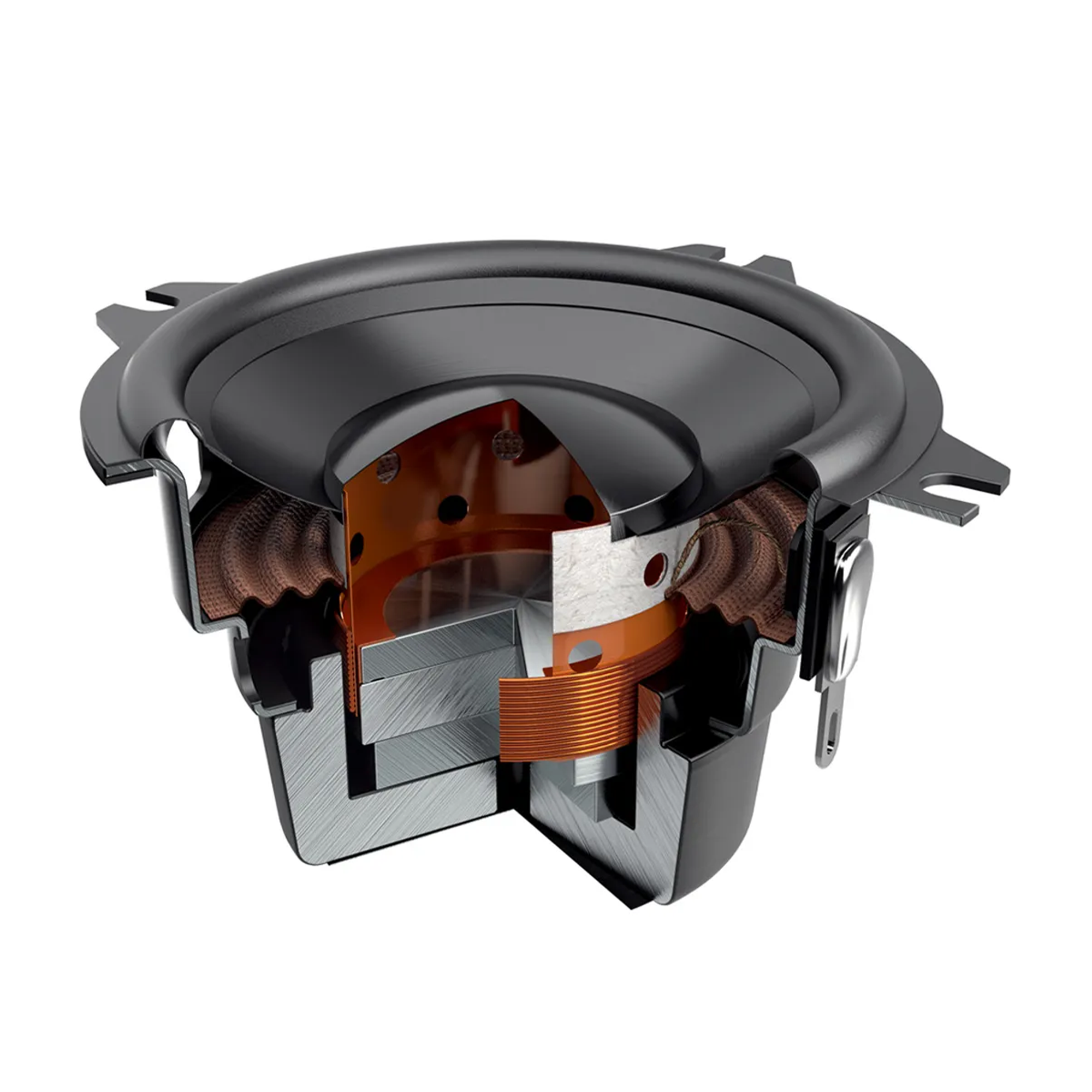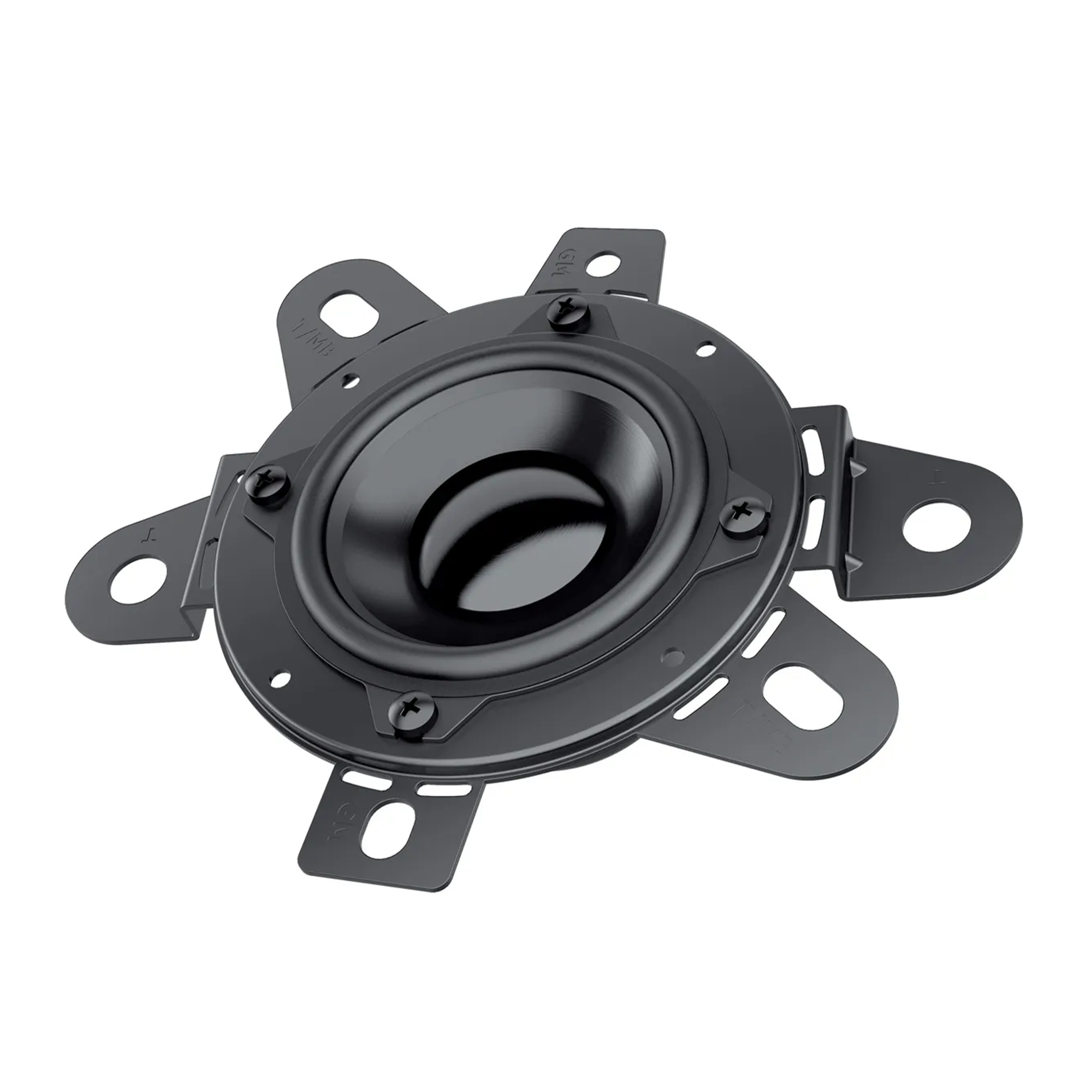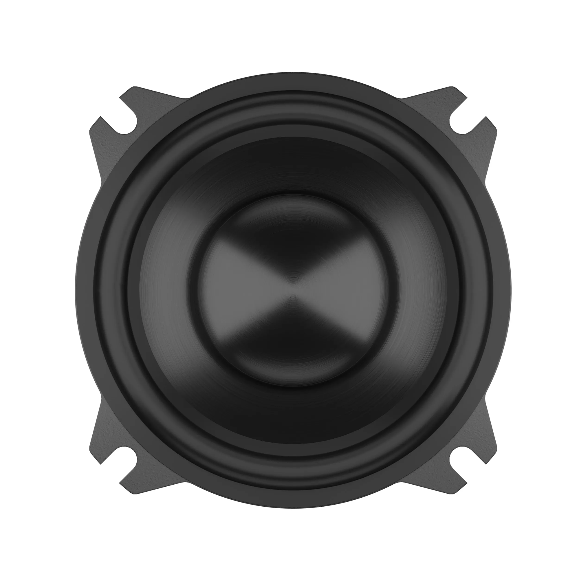 | Тип на високоговорителитеКоаксиални високоговорители: Коаксиалните високоговорители се характеризират с конструкция, наречена всичко в едно. Високочестотният и среднобасовият говорител са в един и същ кош. Предимството е по-лесен монтаж, но поради свързването или близостта на честотните диапазони в един говорител обикновено се понижава качеството на звука. Обикновено в центъра на среднобасовия говорител се намира високочестотният говорител, чиито звукова бобина работи във втората въздушна междина на общия магнитен кръг. Коаксиален говорител с три честотни диапазона се състои от среднобасов говорител, отпред на специален носач е поставен средночестотният говорител и отделен високочестотен. Компонентни високоговорители: Компонентните високоговорители се отличават с разделянето на отделни честотни диапазони: високочестотен + среднобасов + евентуално басов диапазон. Отделните говорители могат да бъдат разположени напълно отделно, което води до по-добро звуково и акустично представяне. В огромното мнозинство от случаите при компонентните високоговорители се доставя и външна кросоувърна мрежа, която разделя високите, средните/среднобасовите и при системи с три честотни диапазона и басовите честоти, както и позволява настройване на нивото в децибели на високочестотния говорител (напр. +2 dB, 0 dB, -2 dB), стръмността (напр. 6 dB/октава, 12 dB/октава) или активно/bi-amp свързване. | Средночестотни |