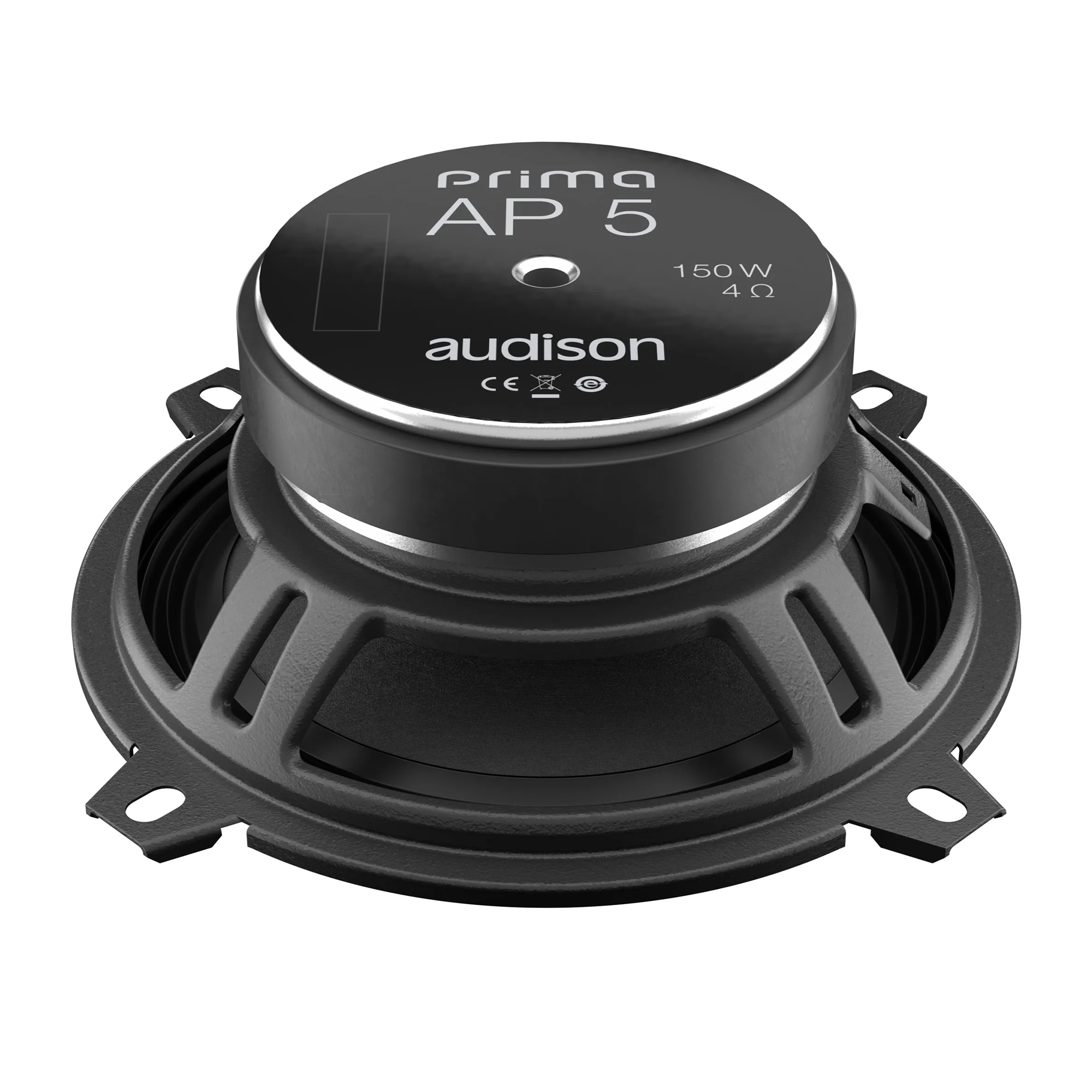 Среднобасовите говорители Audison AP 5 са оборудвани с 32 mm медна гласова бобина за максимална производителност. Хартиената мембрана с водоотблъскващо покритие е разработена чрез симулационната технология FEM (метод на крайни елементи). Намалената монтажна дълбочина позволява лесен монтаж на различни места. Компактният кош на говорителя е защитен с покритие против надраскване. Благодарение на терминала за бързо свързване монтажът отнема малко време и е много гъвкав. Терминалът е оборудван с термоустойчив пластмасов капак, който го защитава от късо съединение.За марката