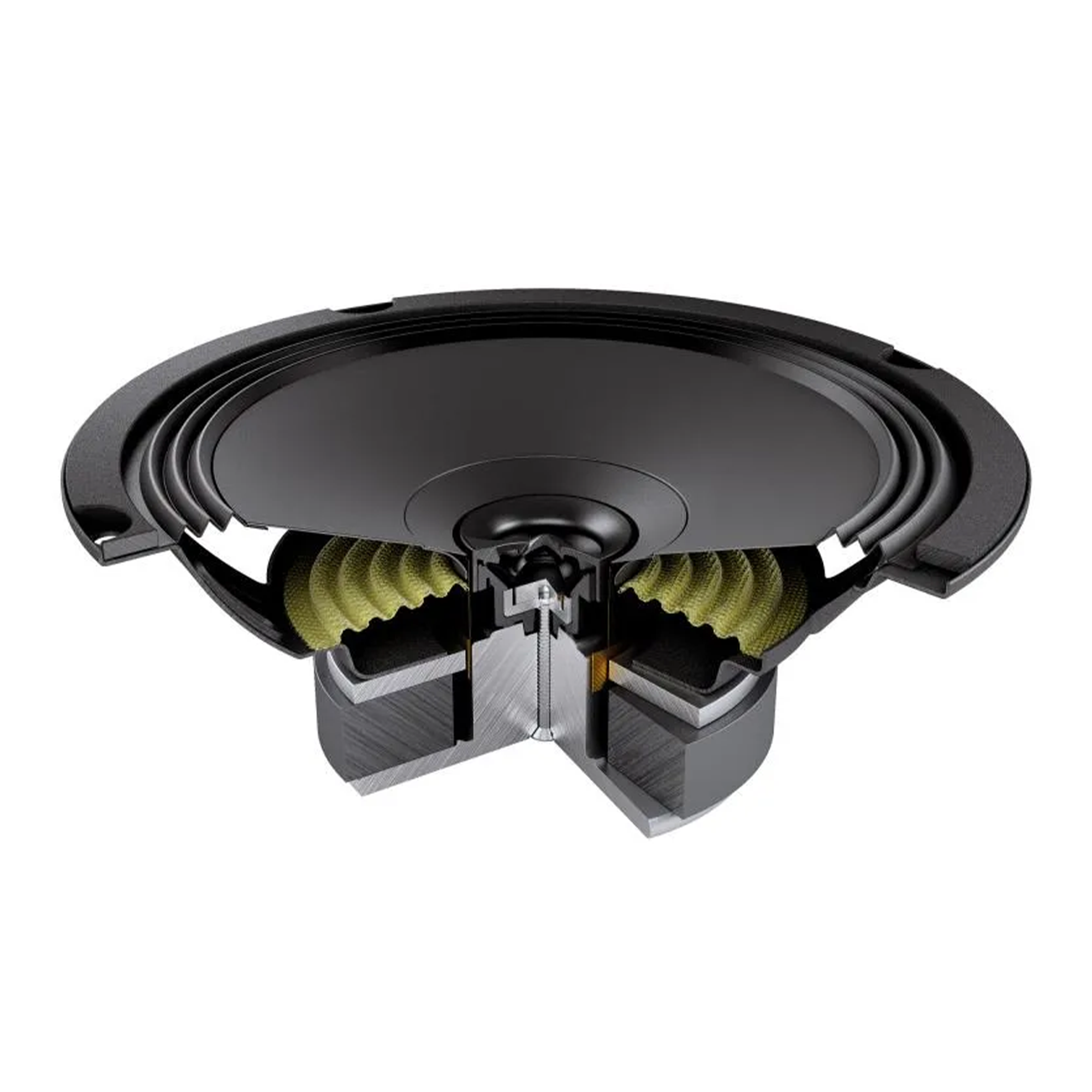 2-лентовите коаксиални говорители са оборудвани с високочестотен говорител с диаметър 24 мм, който е напълно потопен и не пречи при монтажа. Хартиената мембрана на говорителя с водоотблъскващ слой е разработена чрез симулационната технология FEM (Finite Element Method). Компактният корпус е защитен с покритие, устойчиво на надраскване. Общата монтажна дълбочина е оптимизирана за OEM инсталации. Благодарение на терминала за бързо свързване монтажът е бърз и много гъвкав. Терминалът е снабден с пластмасов капак, устойчив на високи температури, който го предпазва от късо съединение. Серията говорители Audison Prima предлага уникален, многослоен гумен окачващ механизъм.