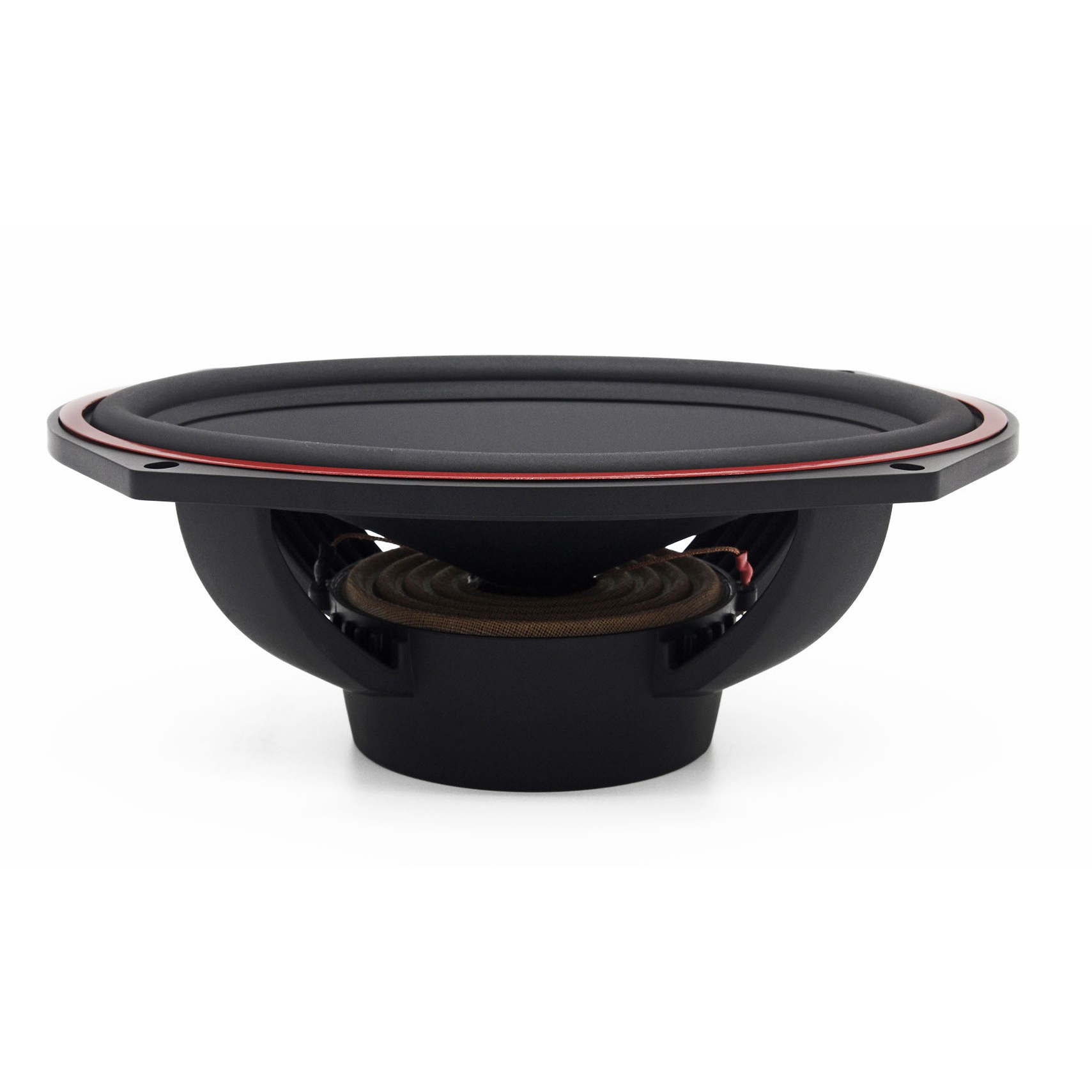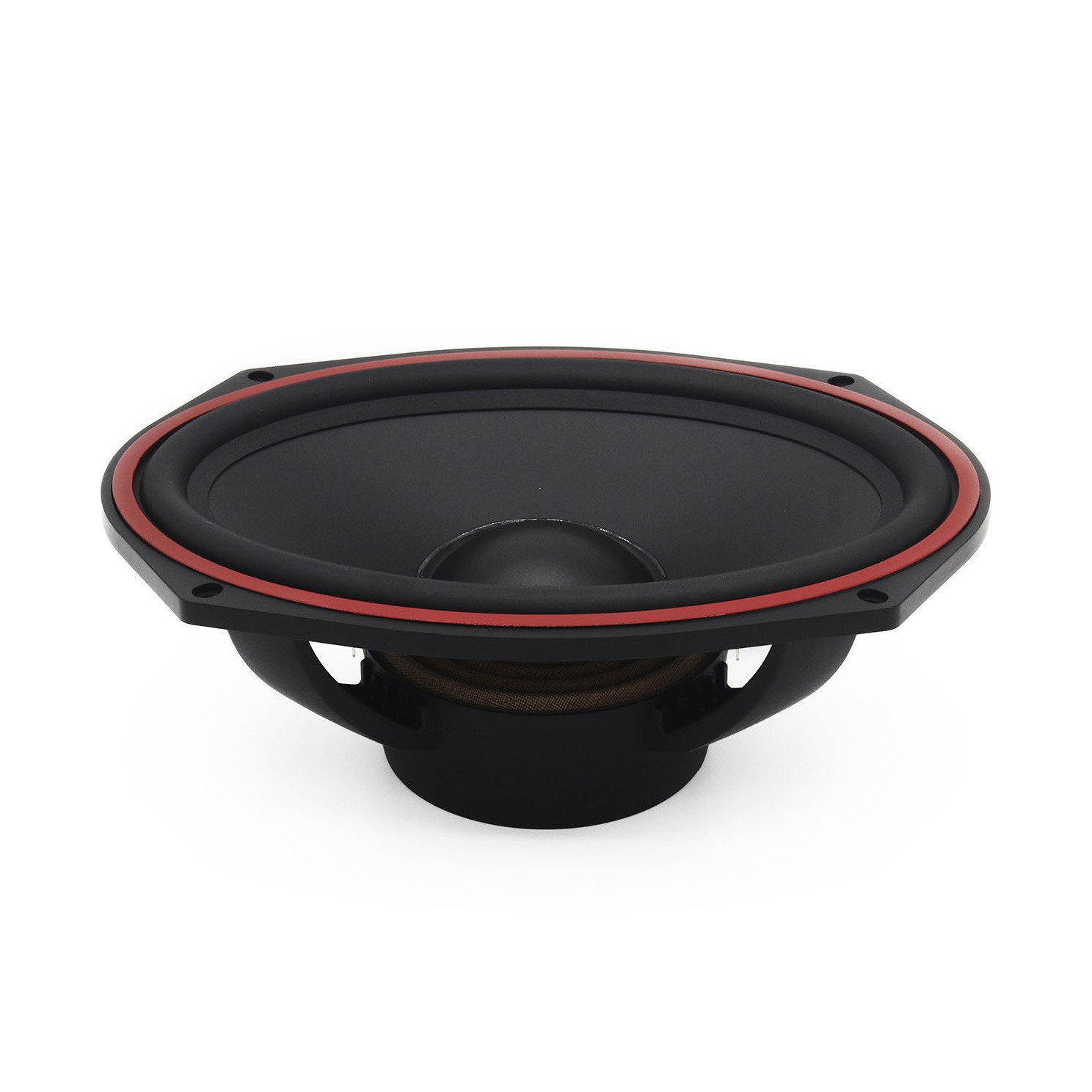 | Диаметър на среднебасовия говорителДиаметърът на говорителя се посочва като диаметър на целия говорител, без да се включват монтажните закрепвания, при които при по-малките говорители (87, 100, 130 mm) закрепванията може да стърчат допълнително. Някои говорители са овални и там размерът се дава в инчове, винаги от най-късата към най-дългата страна. Един инч е приблизително 2,5 cm. | 6 x 9" |